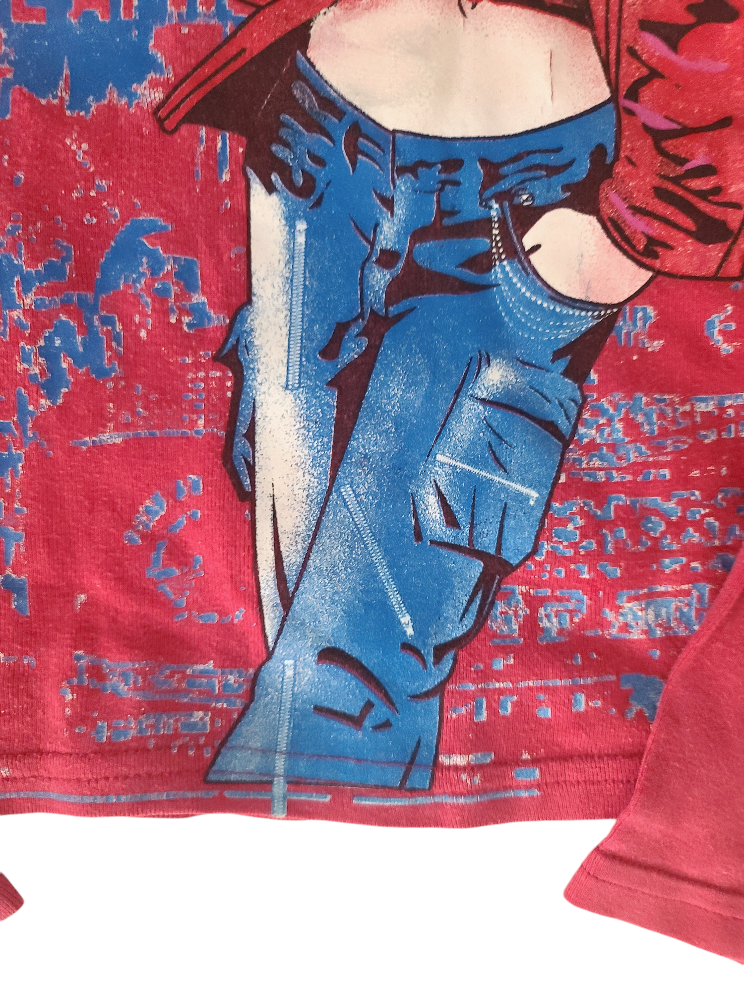 Beautiful red long sleeve top, vintage 90s, rock manga print. Exclusive model.