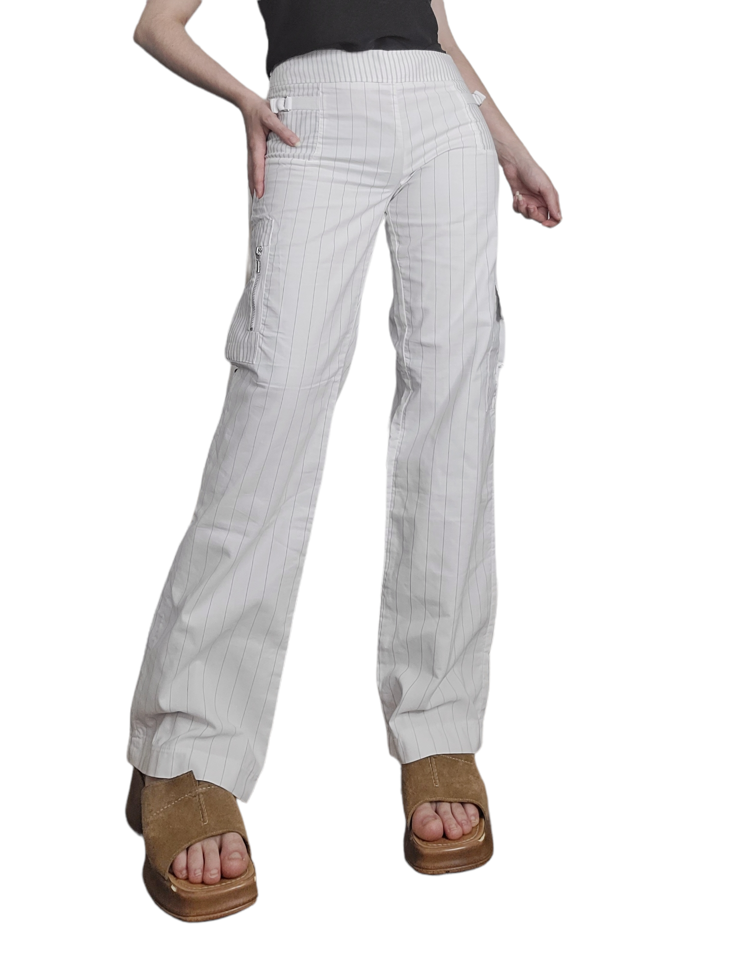 Very nice vintage white techwear cargo from the 2000s with stripes. Straps and multiple pockets.