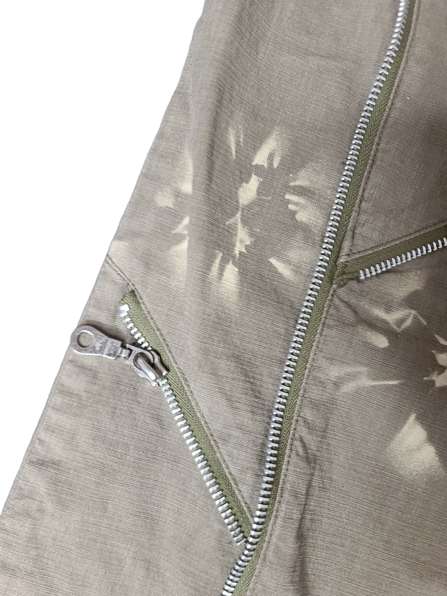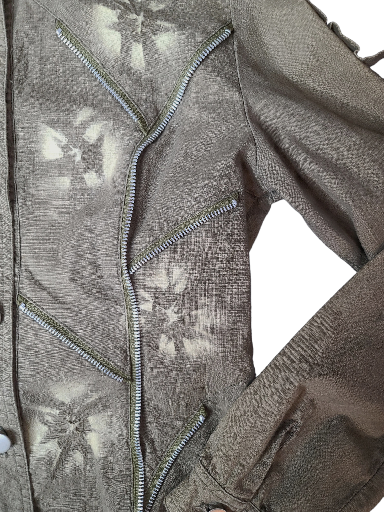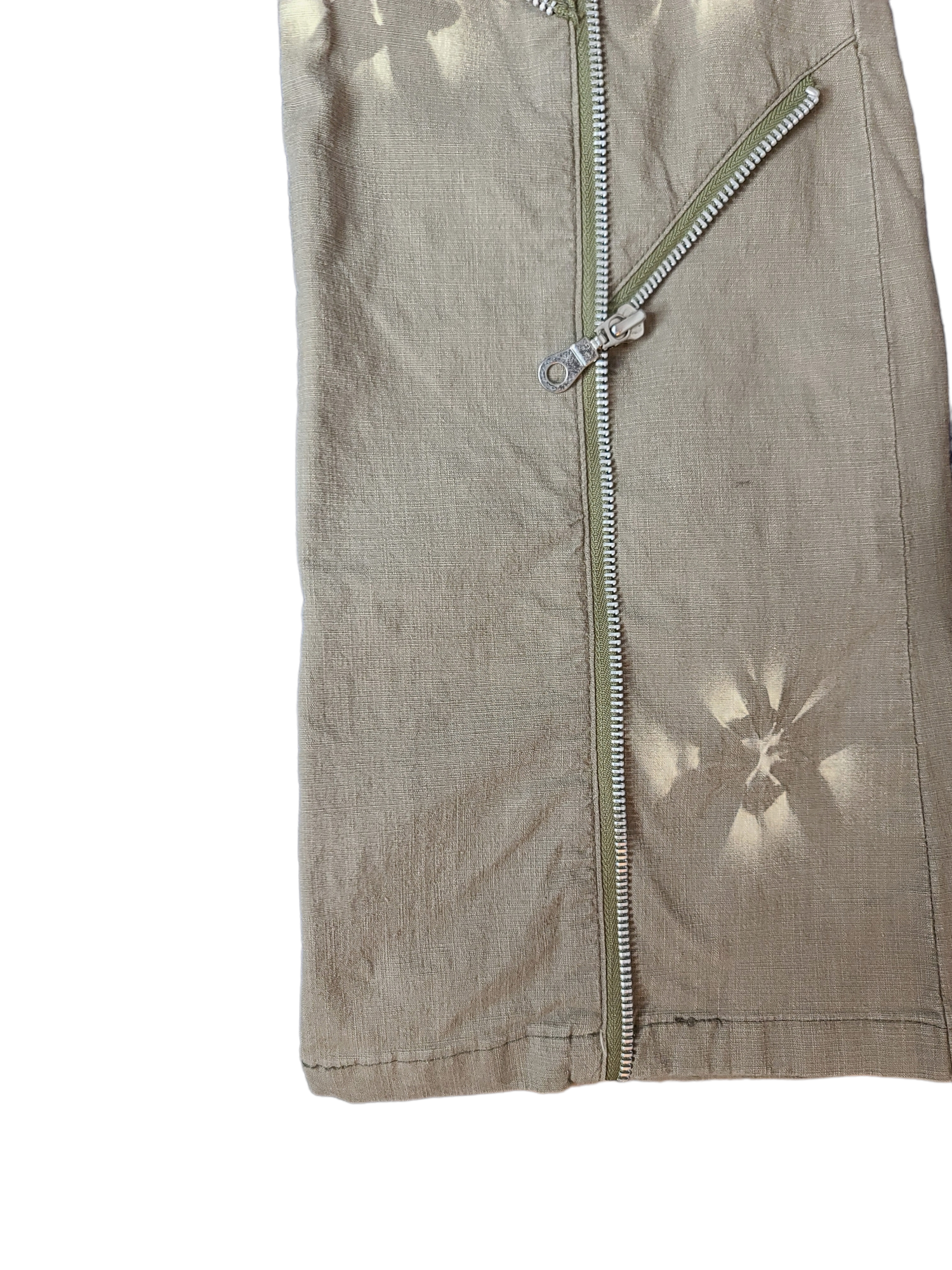 Amazing vintage cybery2k tie and dye khaki denim set. Flare cut jacket and pants, multi zips. Grunge archive.