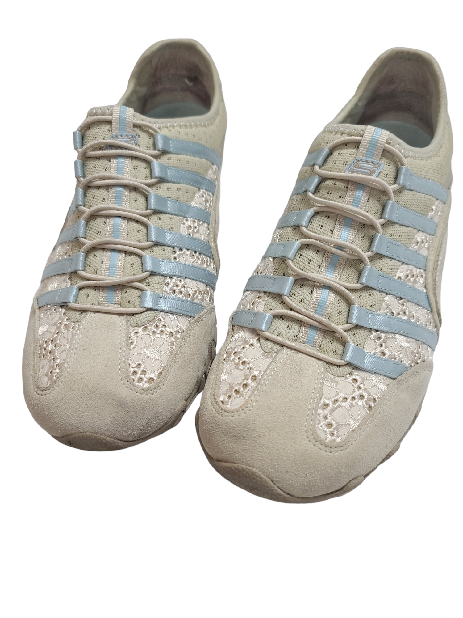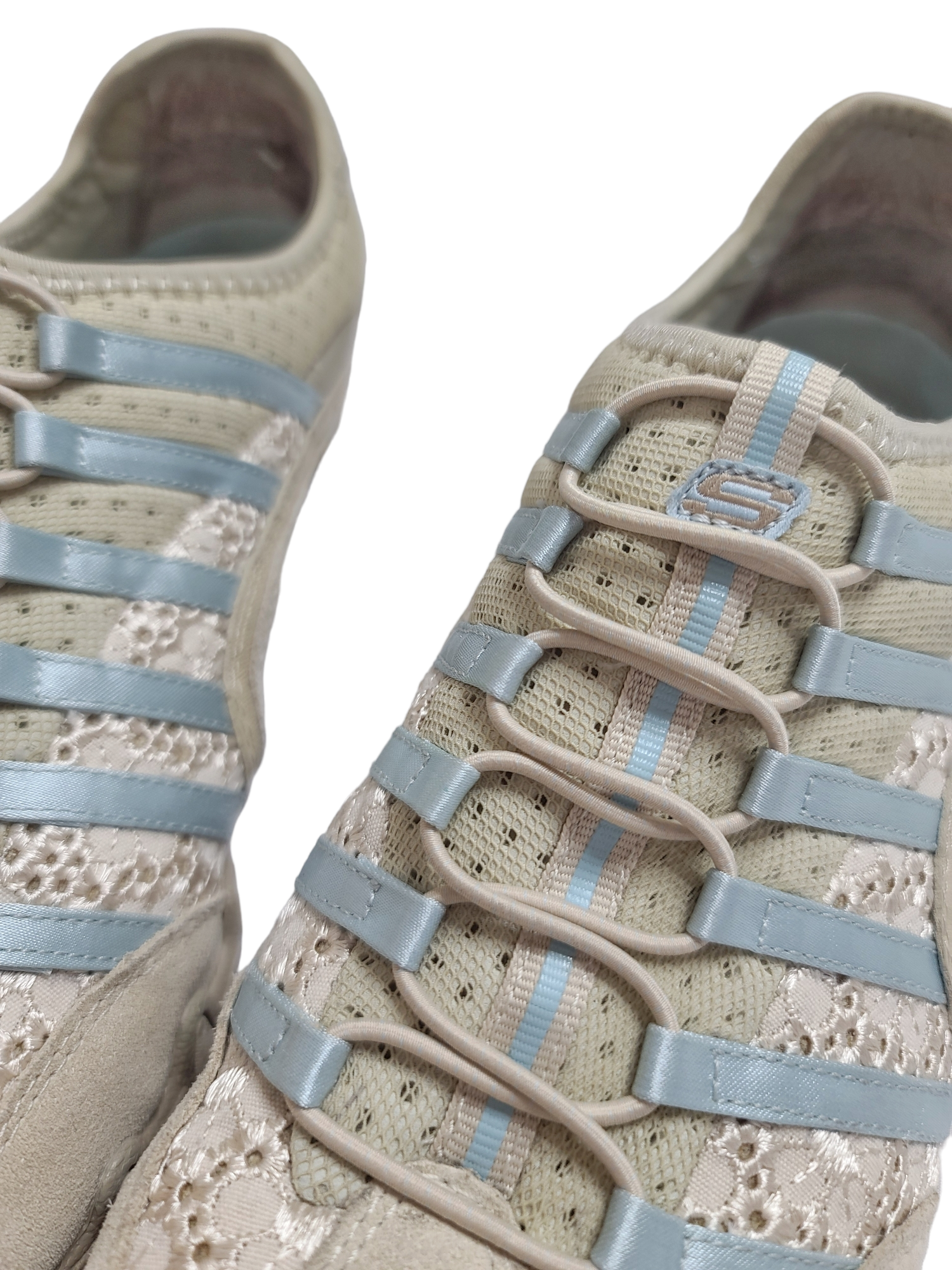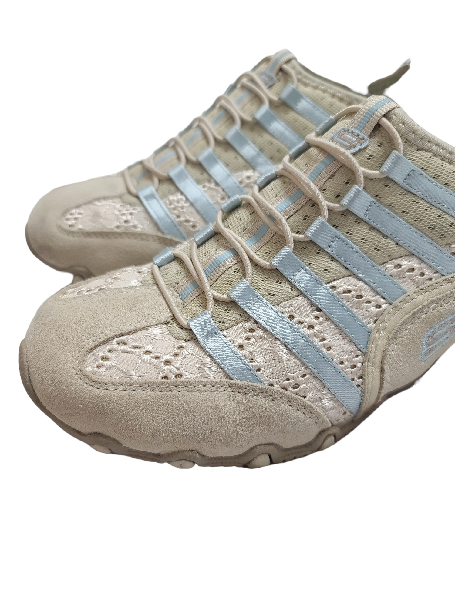 Amazing vintage pastel blue and beige sneakers from the 2000s, archive, cybery2k sportswear with elastics and lace. Utility gorpcore.
