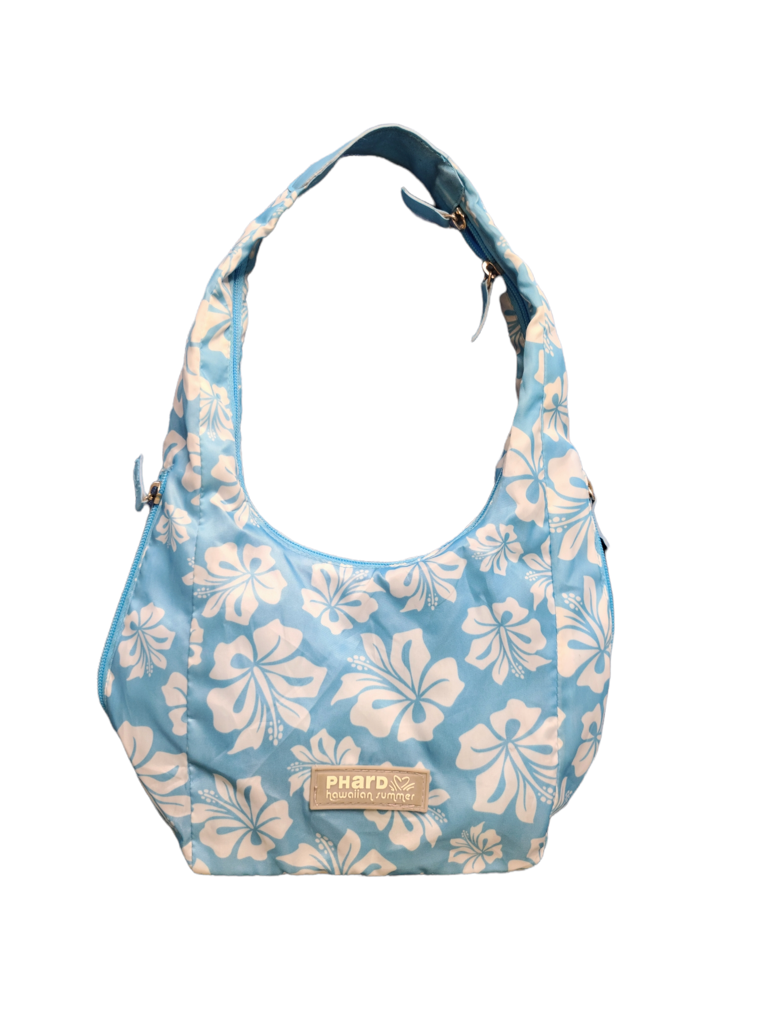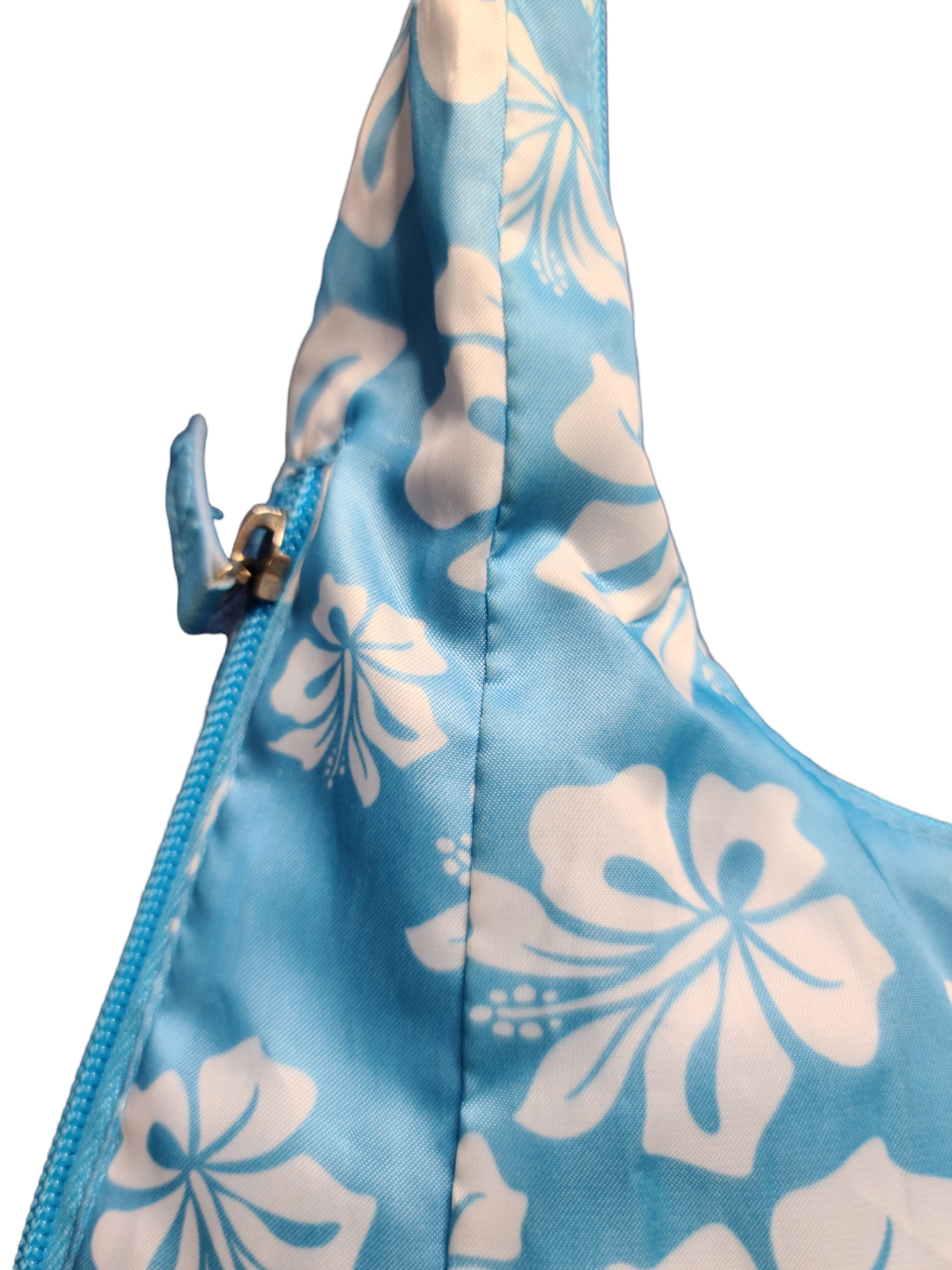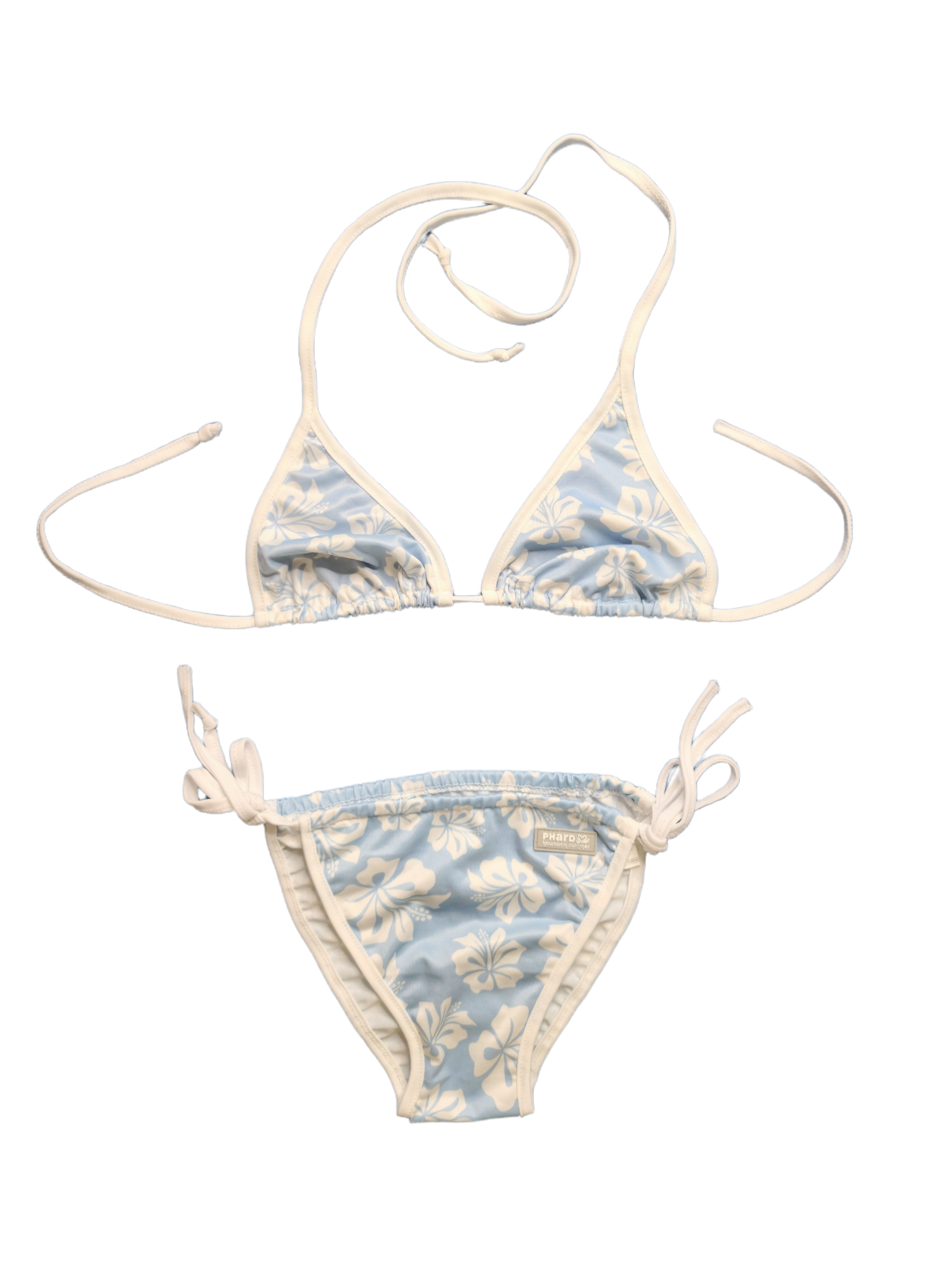 Beautiful vintage pastel blue hibiscus set from the 2000s: 2-piece swimsuit + y2k mini bag.