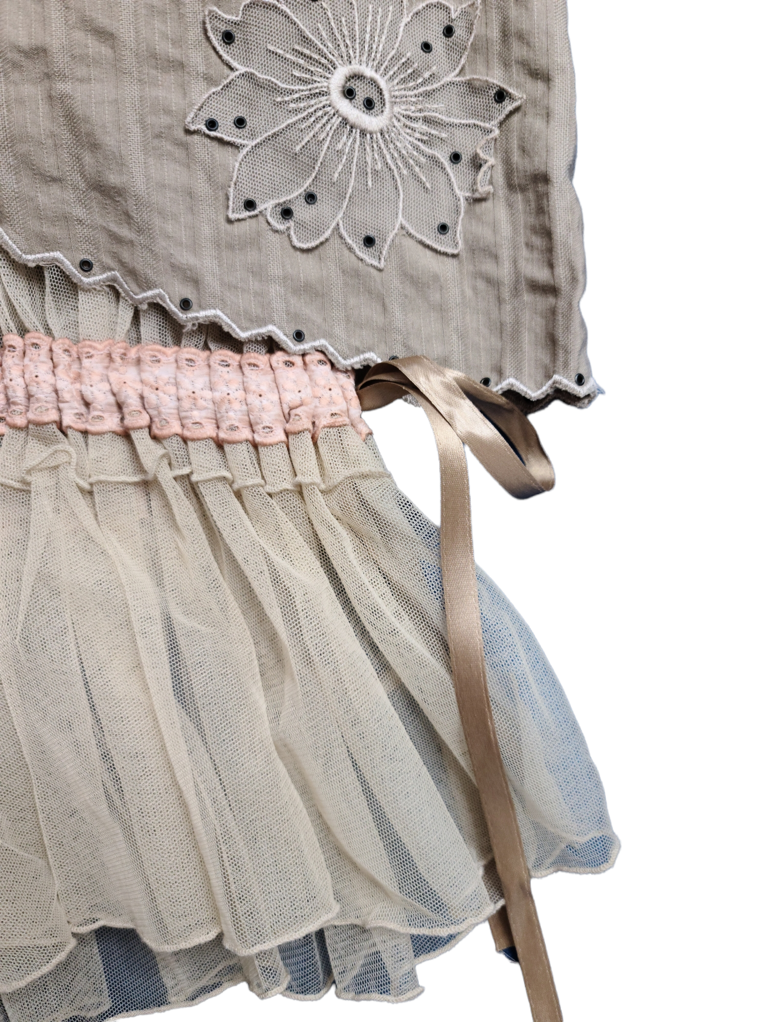 Very beautiful vintage skirt from the 2000s fairygrunge, very cute with pink lace elements and openwork embroidery. Fairycore button details.