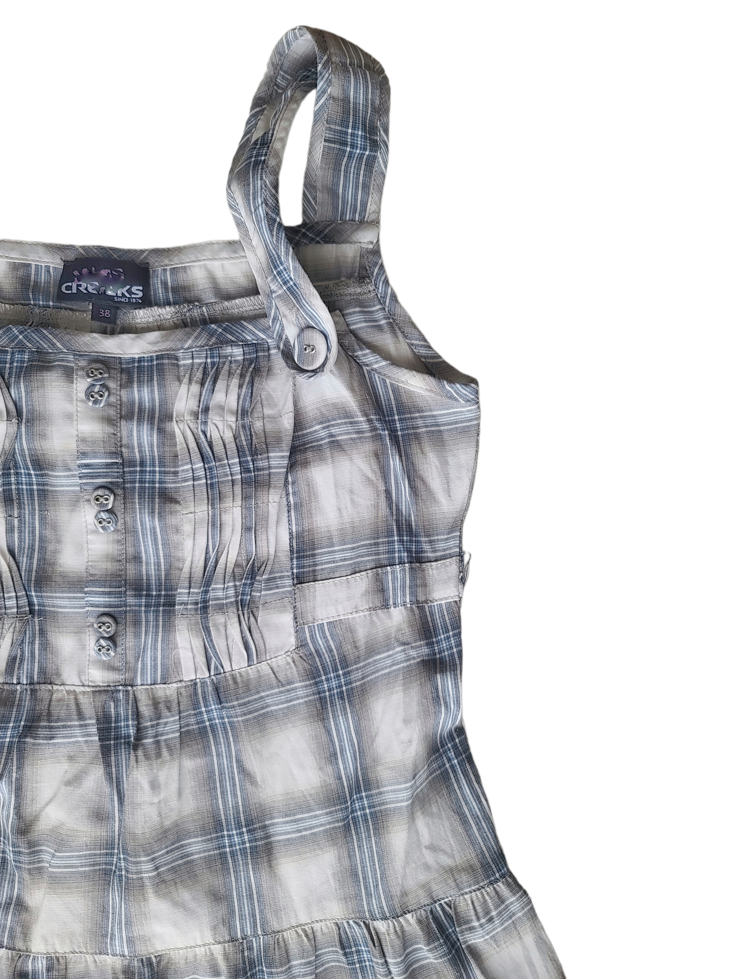 Mini dress with tartan straps kawaii downtown gray blue and white, kawaii.