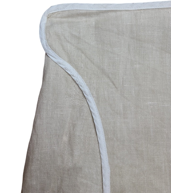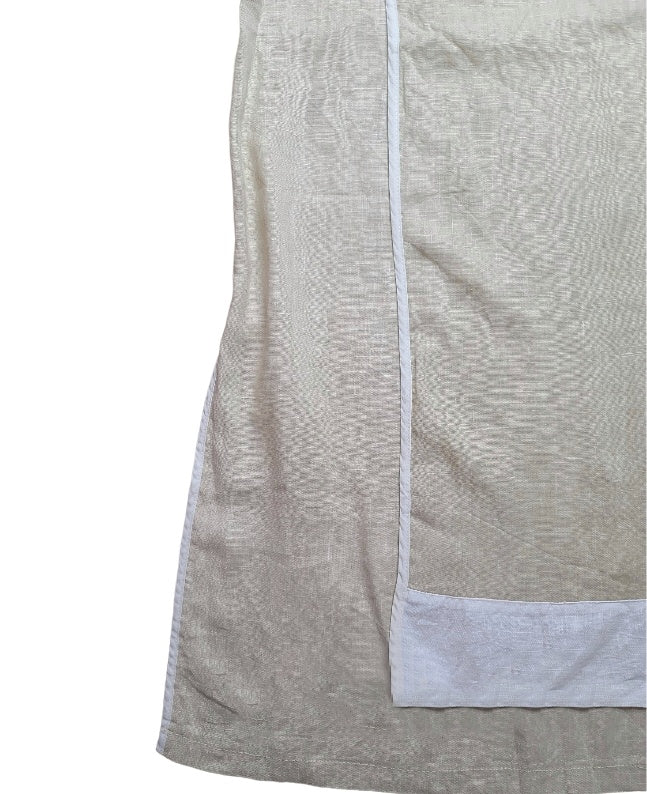 Amazing vintage futuristic harajuku cream linen long skirt with top panel, rounded corner at waist. Subversive basics style.