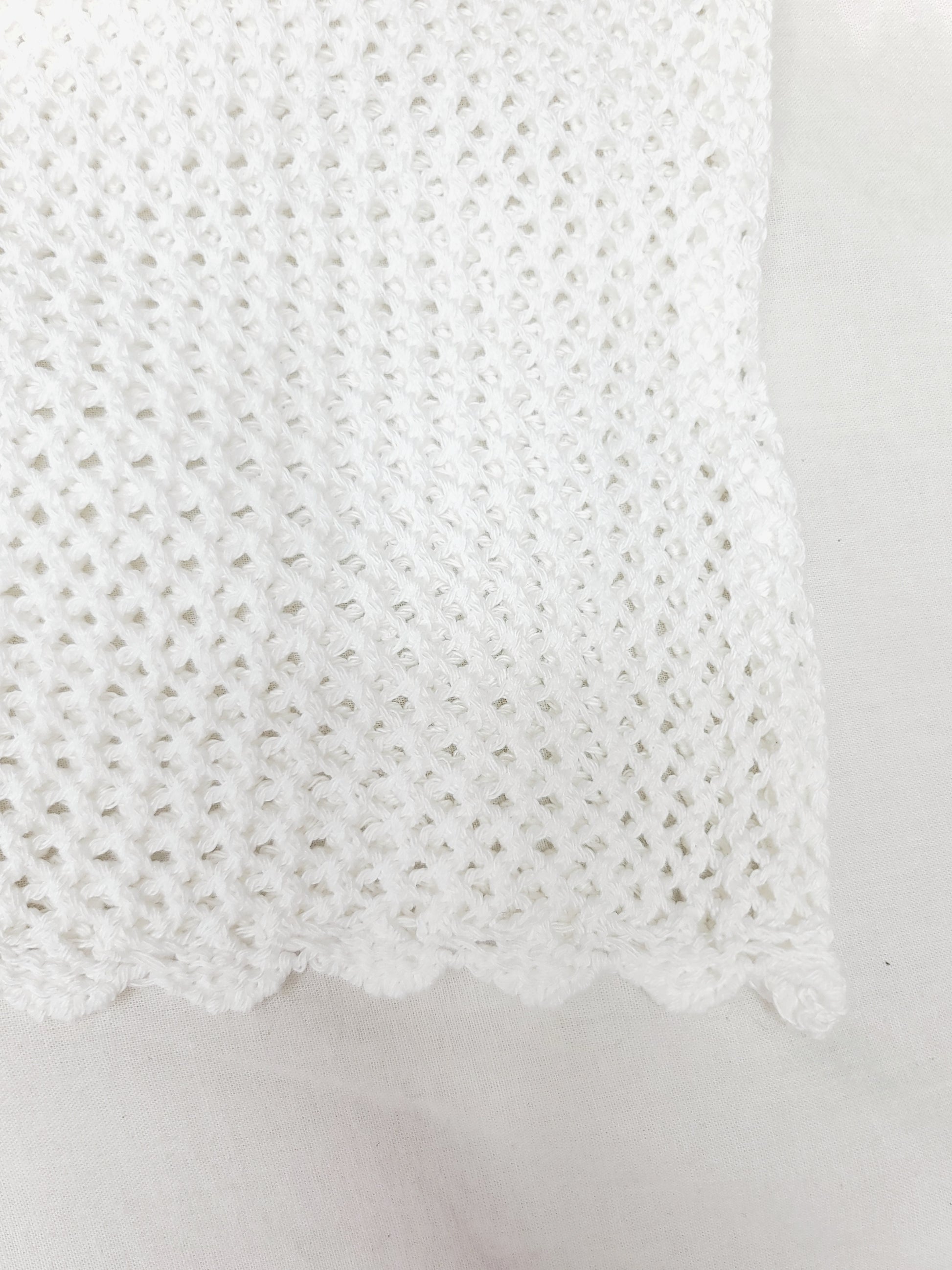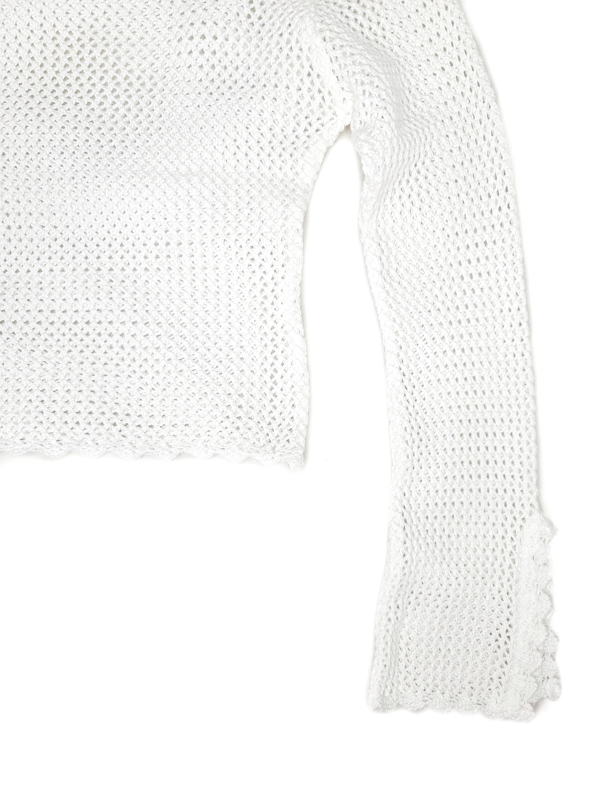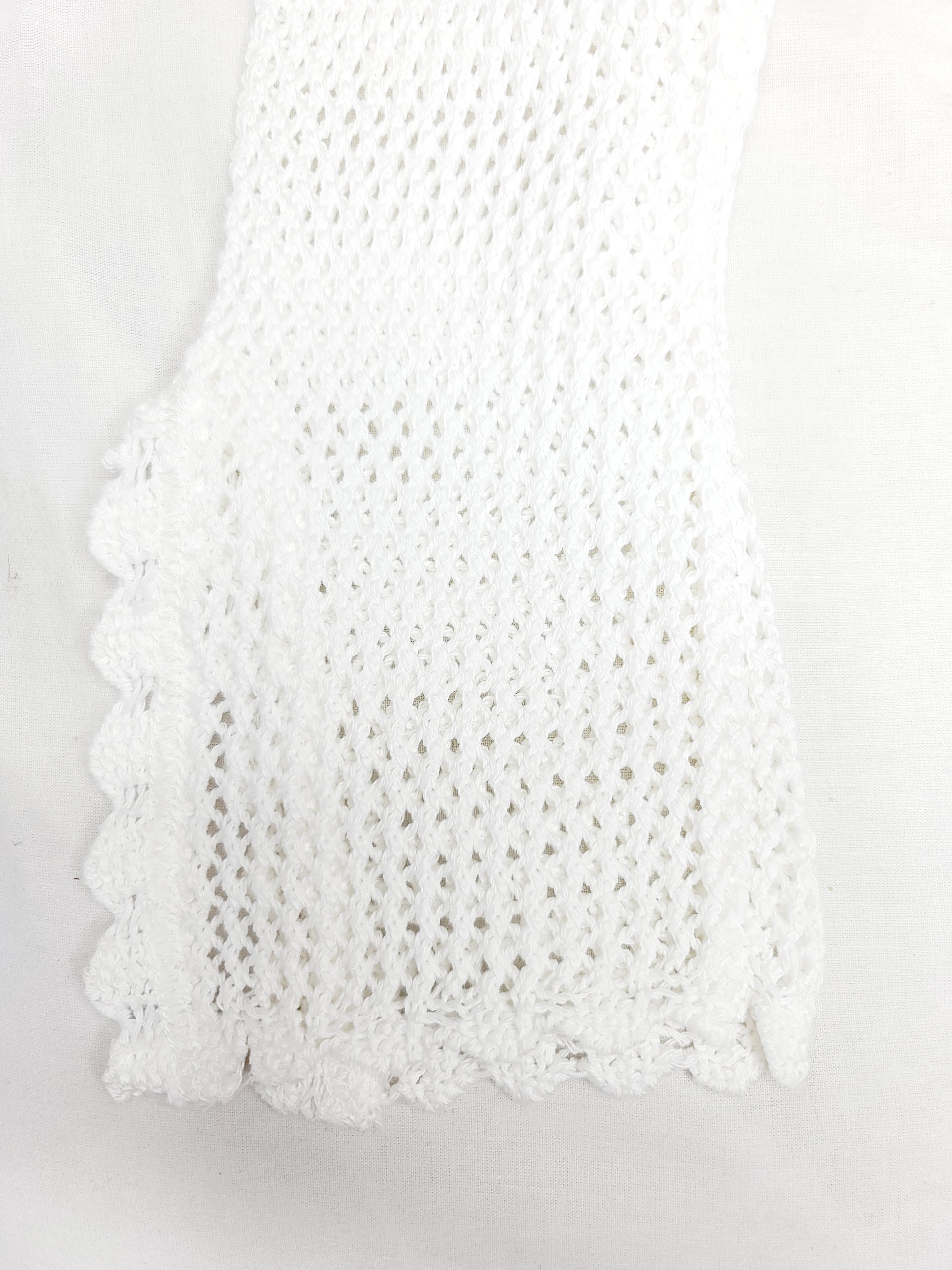 Vintage white fairygrunge mesh sweater with long crochet sleeves, subversive basics, neutral bohemian style.