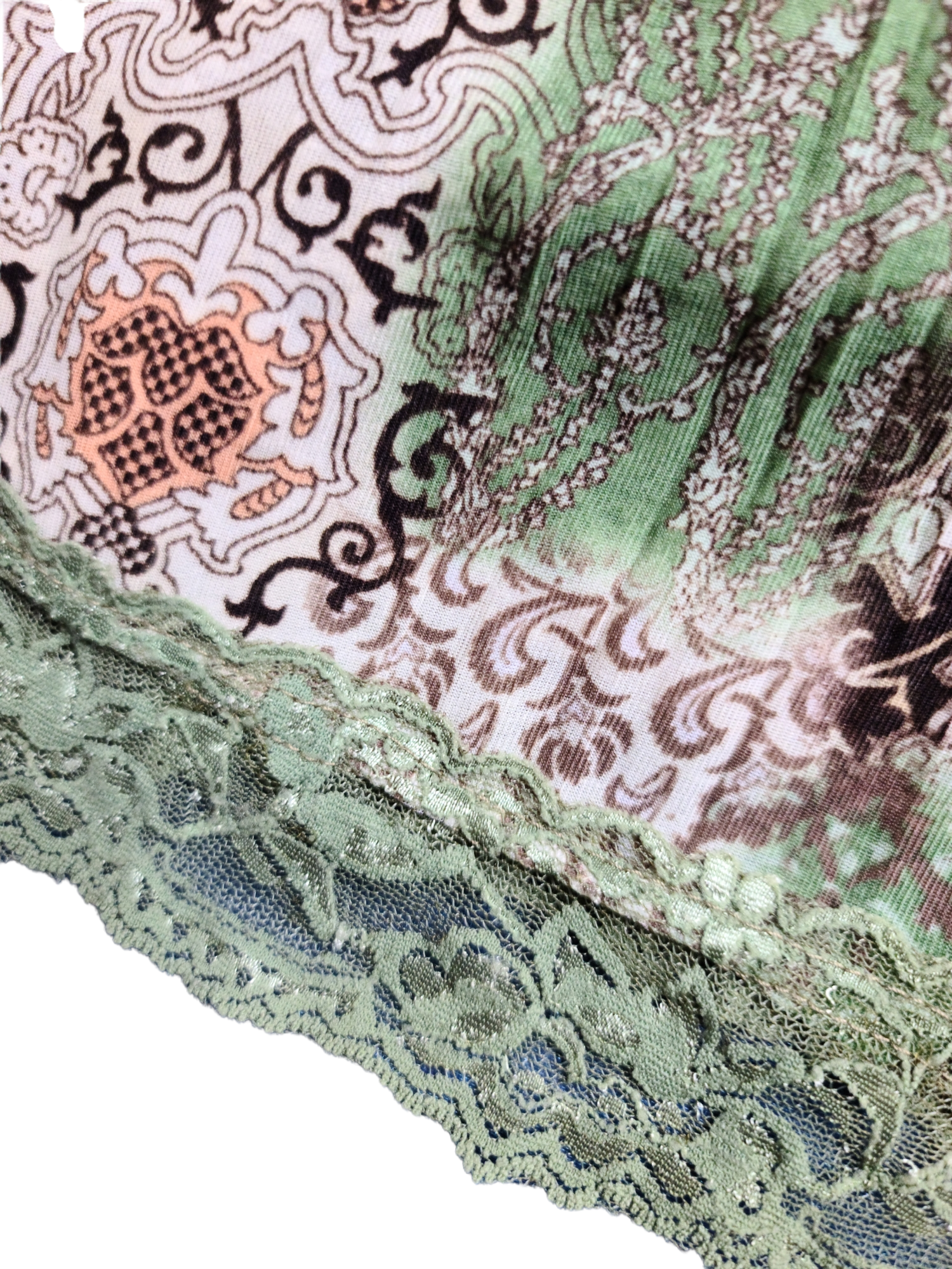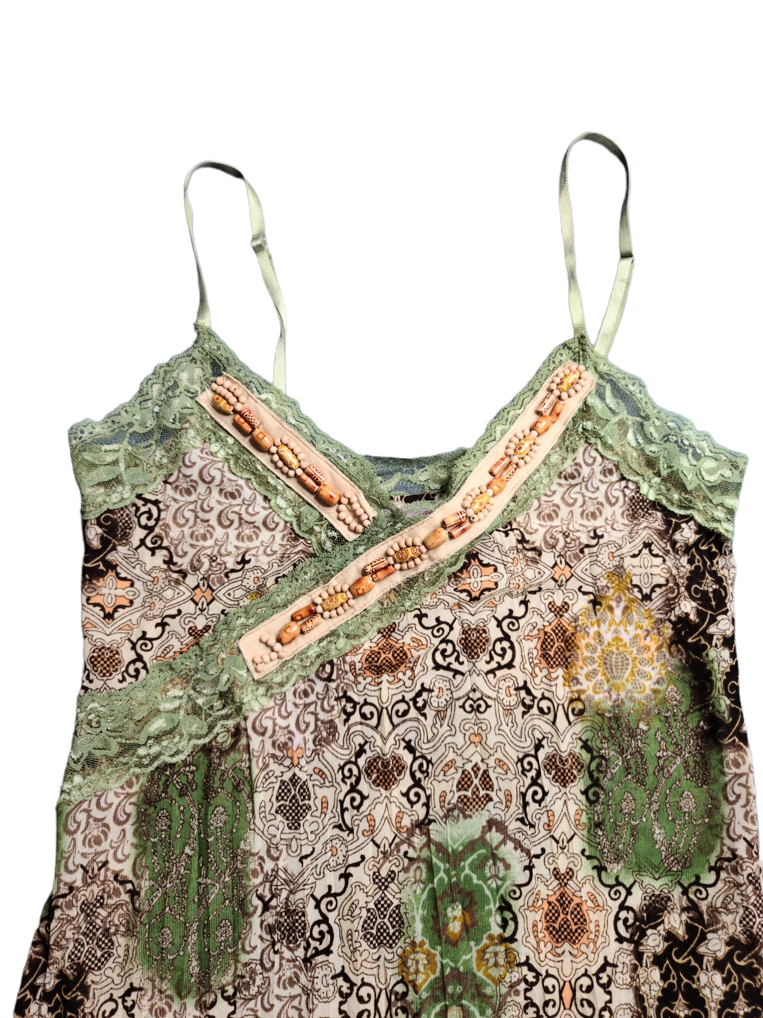 Vintage 2000s y2k bohemian mesh tunic with arabesques and lace. Wooden bead details. Exclusive model.