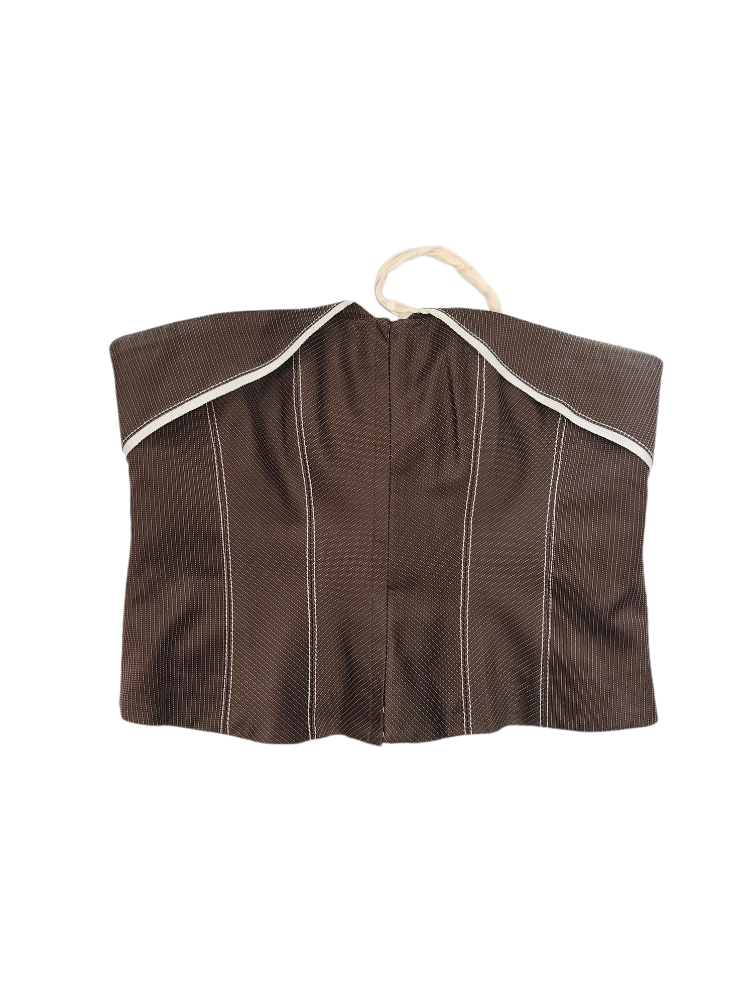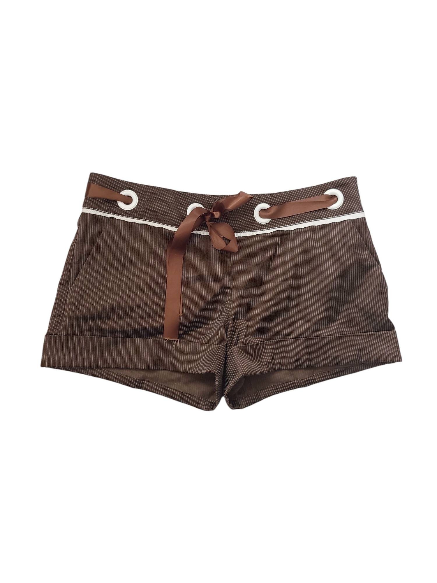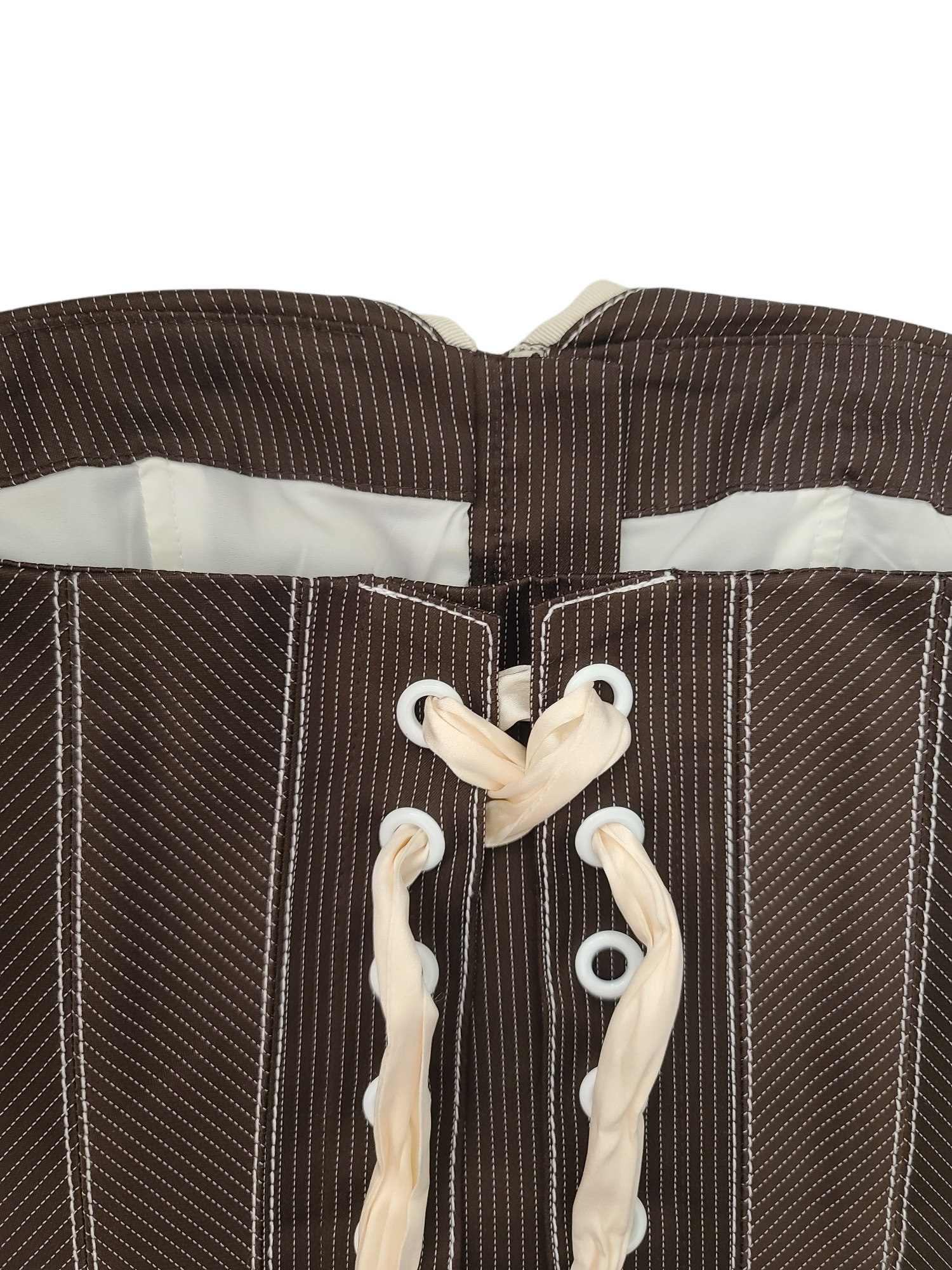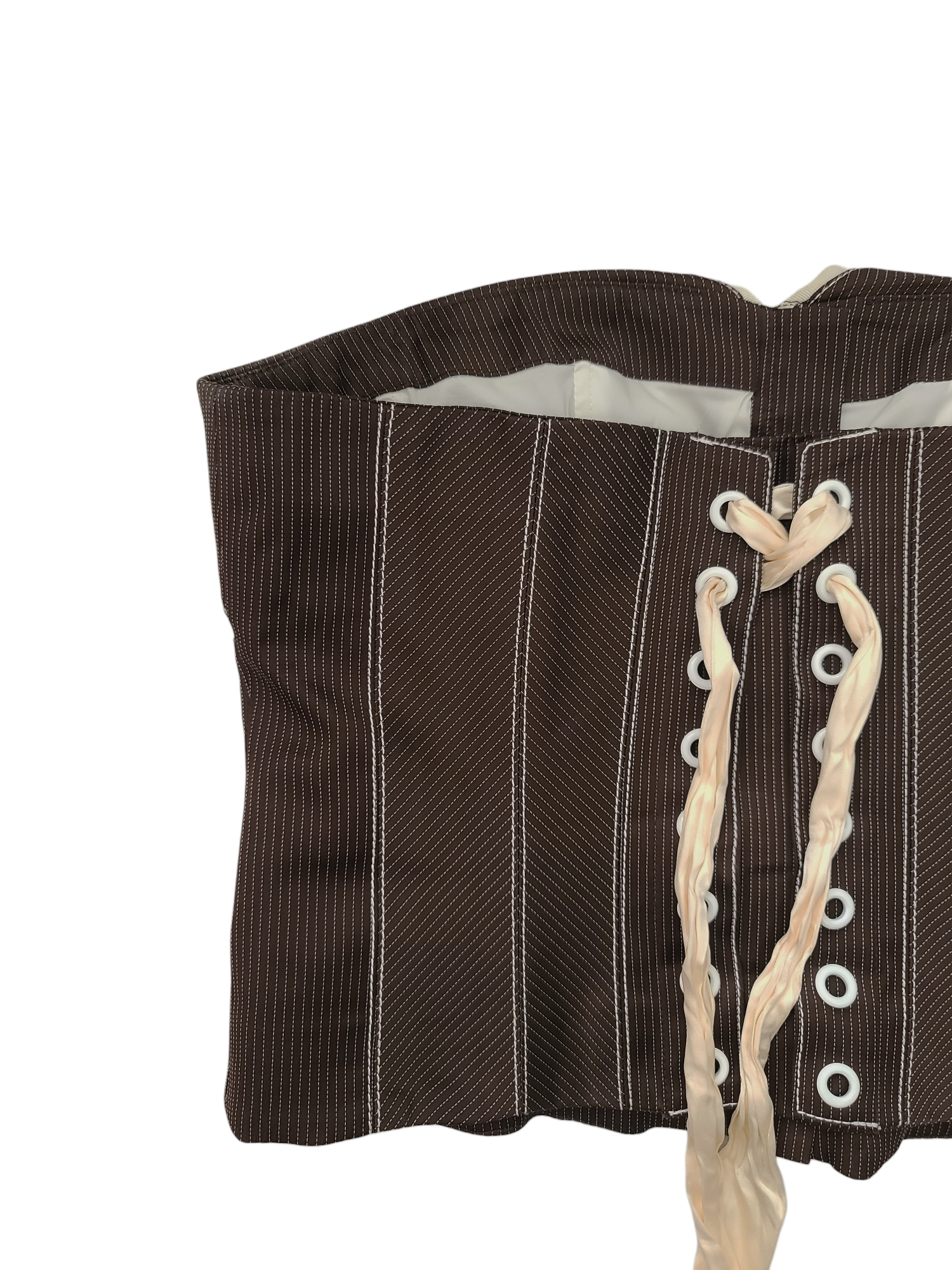 Beautiful vintage y2k brown and beige striped coquette downtown set with ribbons. Corset and shorts. Officecore archive.