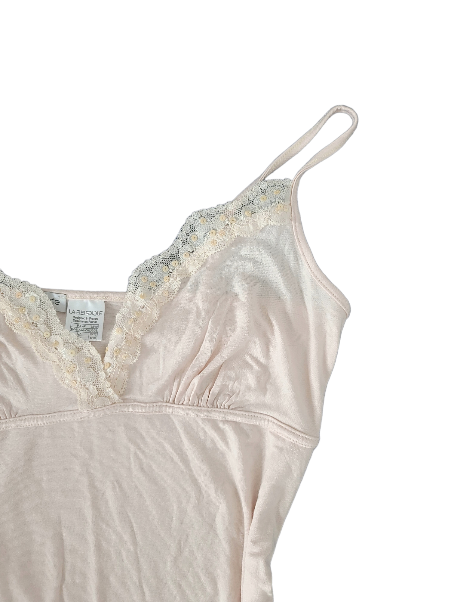 Beautiful pale pink tank top from the 2000s with lace. Nice archive.