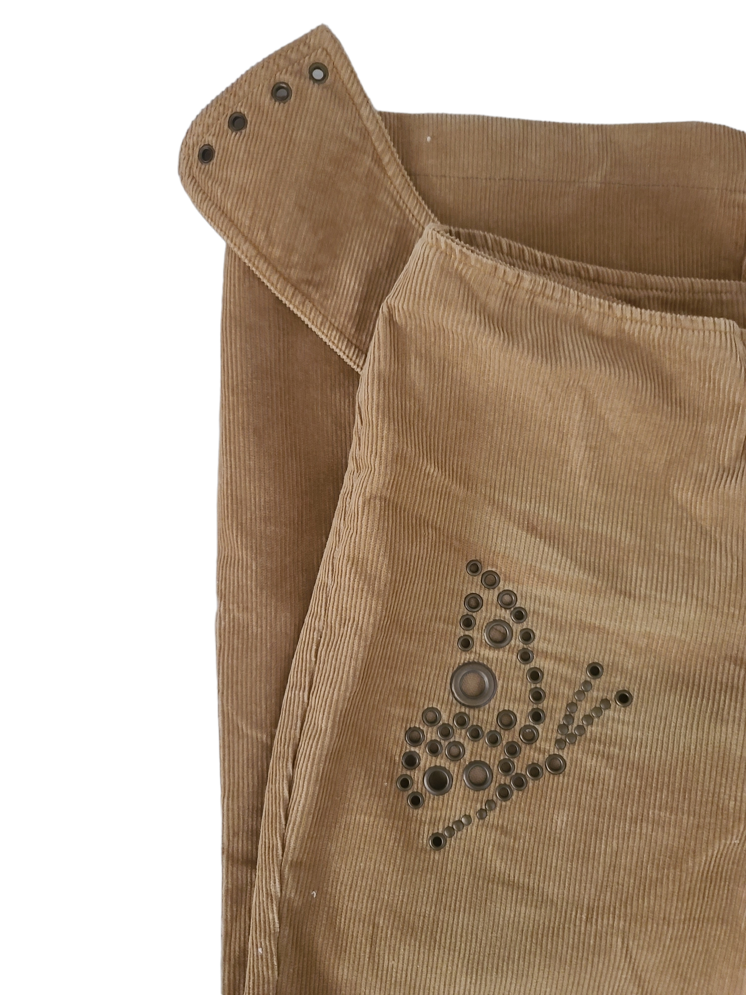 Incredible vintage y2k brown corduroy pants from the 2000s, fairygrunge cut. Butterfly pattern with eyelets.