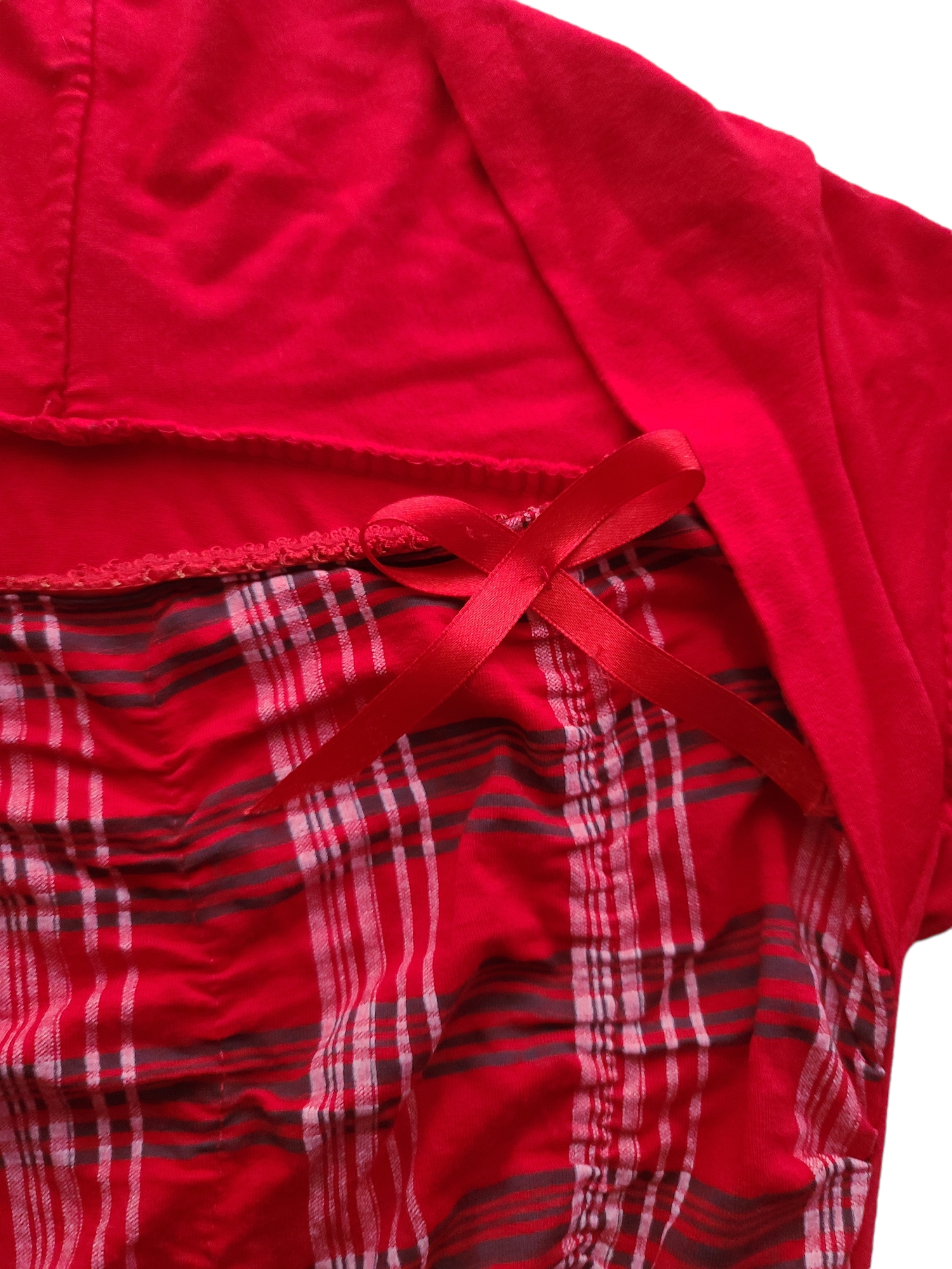 Very beautiful vintage gyaru y2k gathered red checkered mini dress, lace details, ruffles and ribbon.