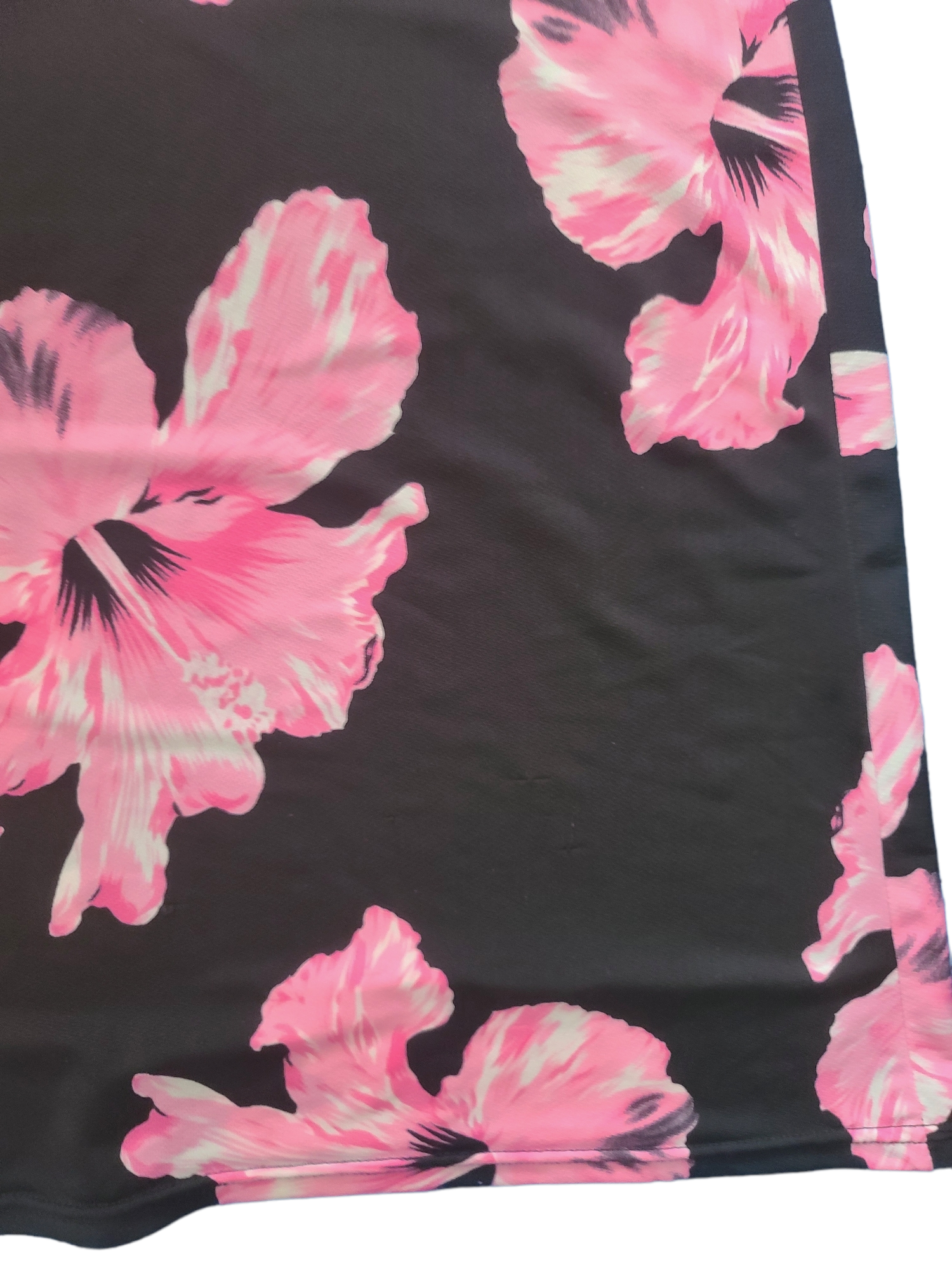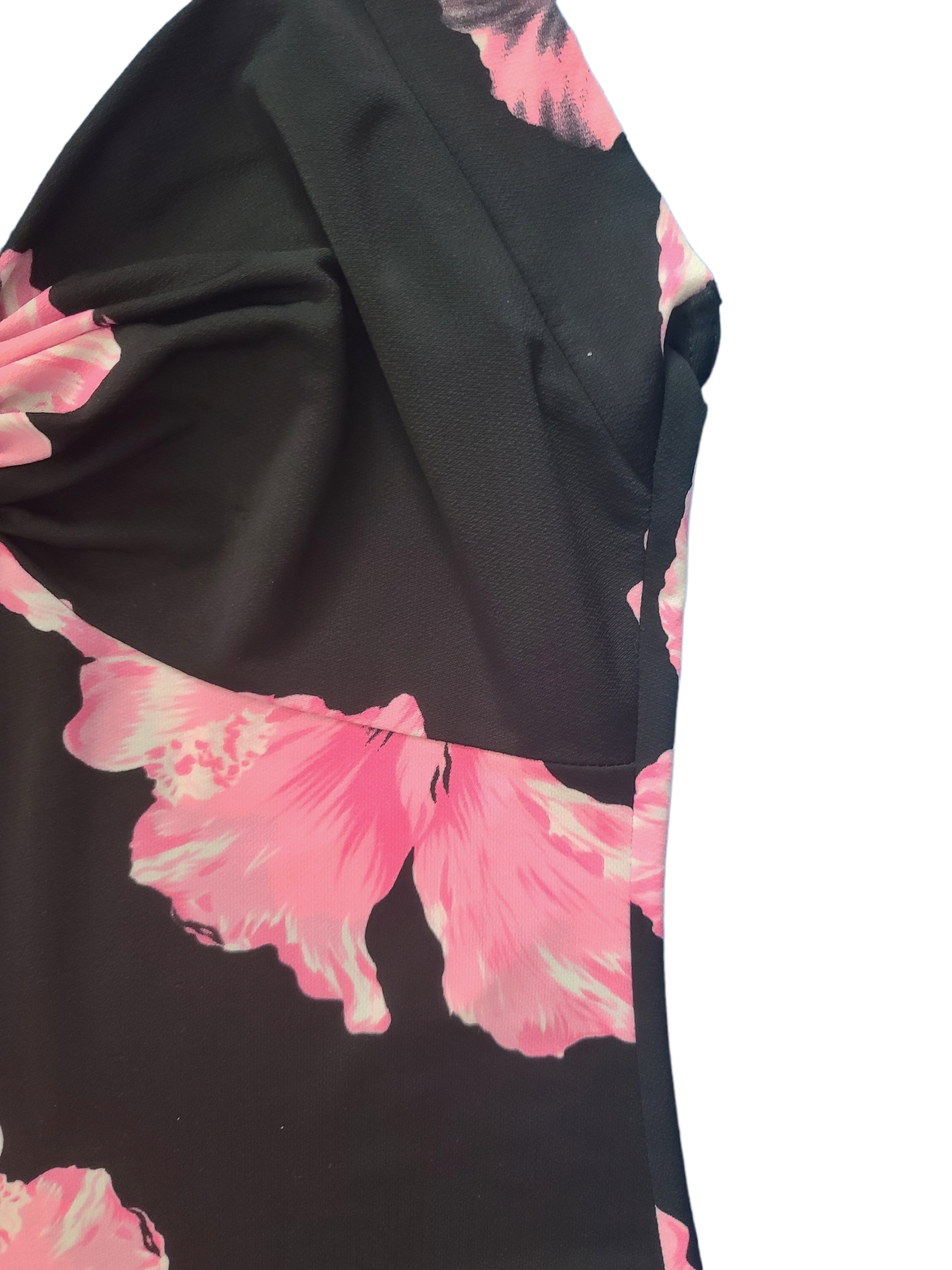 Magnificent vintage y2k long flowing dress from the 2000s, black and pink, hibiscus print.