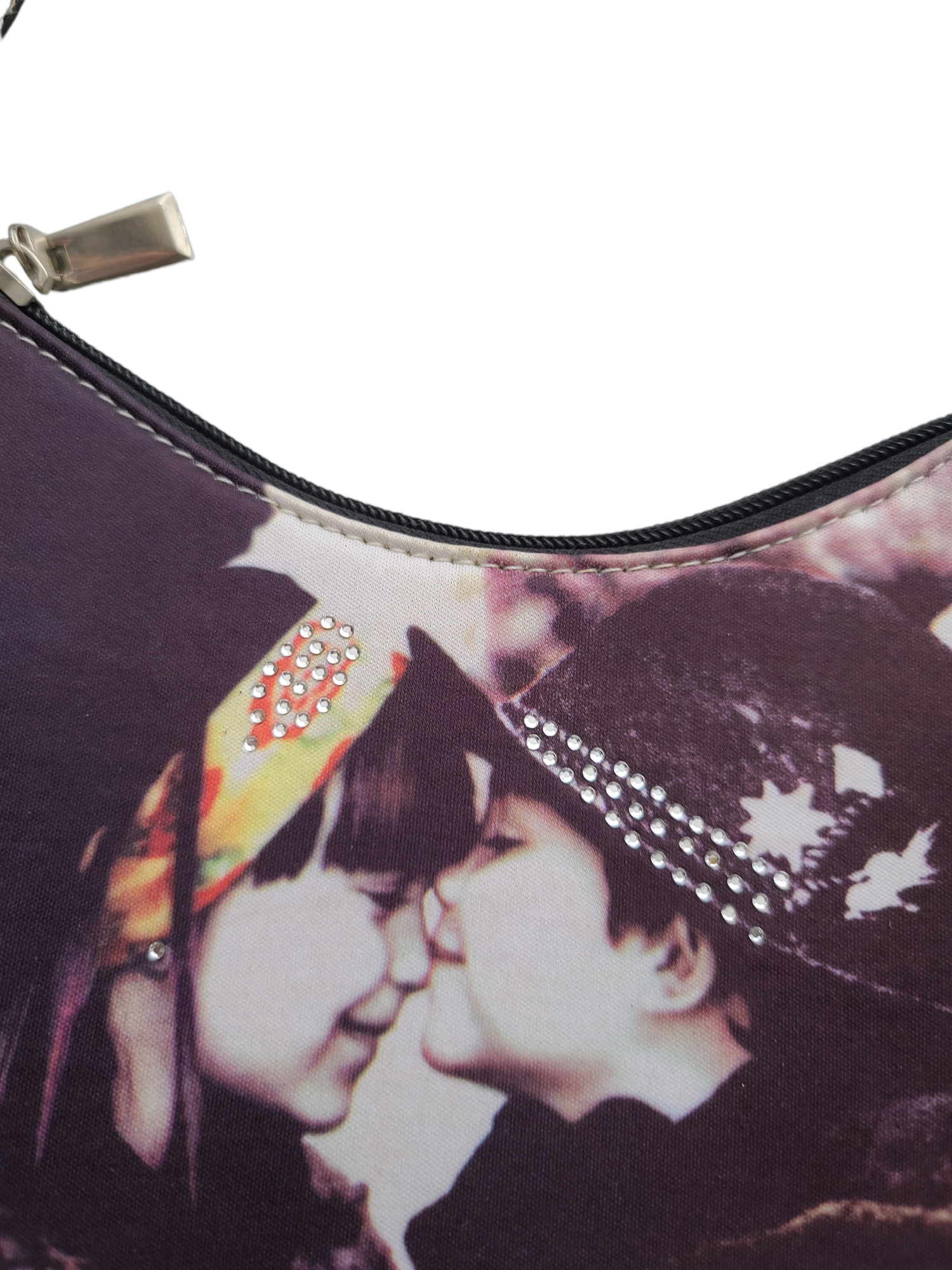 Amazing vintage 2000s handbag, kids print, y2k ultra cute with rhinestones. Inside pocket.