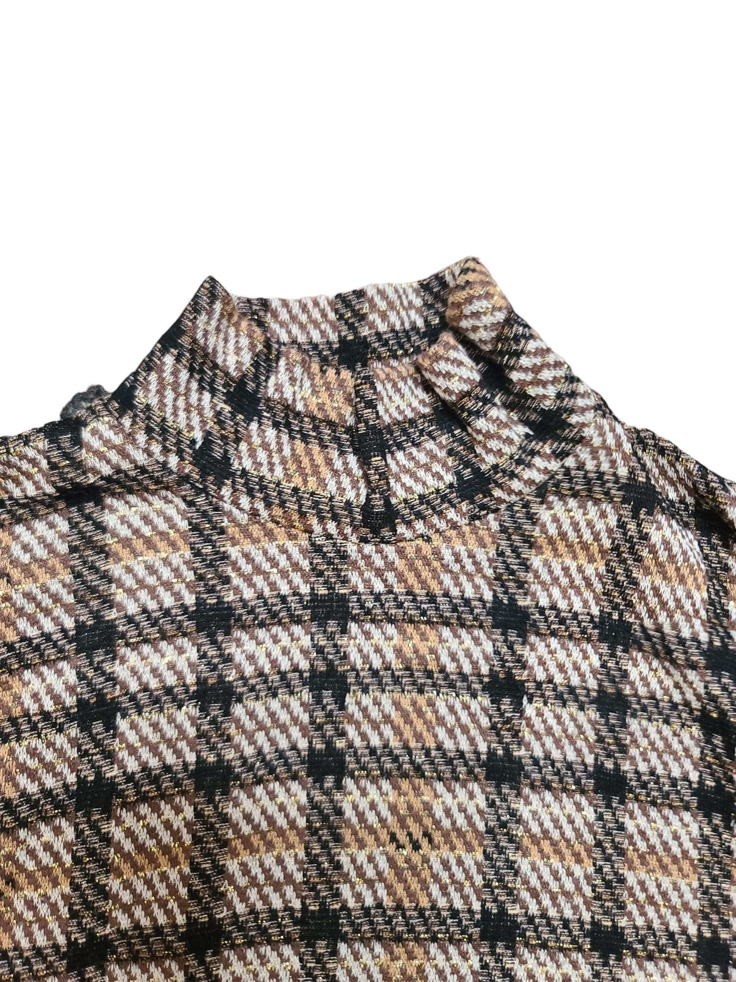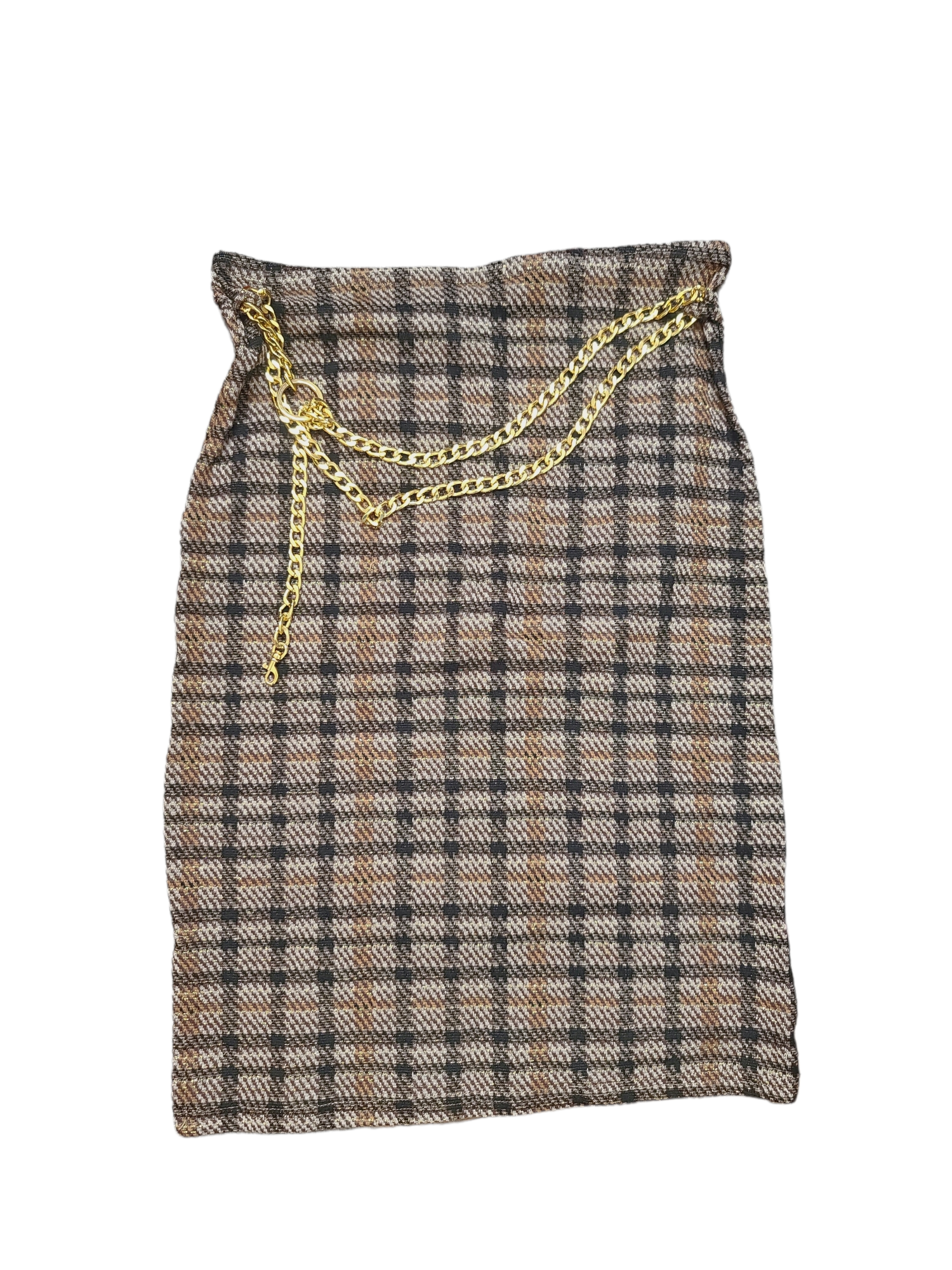Magnificent vintage y2k tight-fitting set with checks and gold threads. Sleeveless tight-fitting top and pencil skirt with chain belt. Preppy archive.