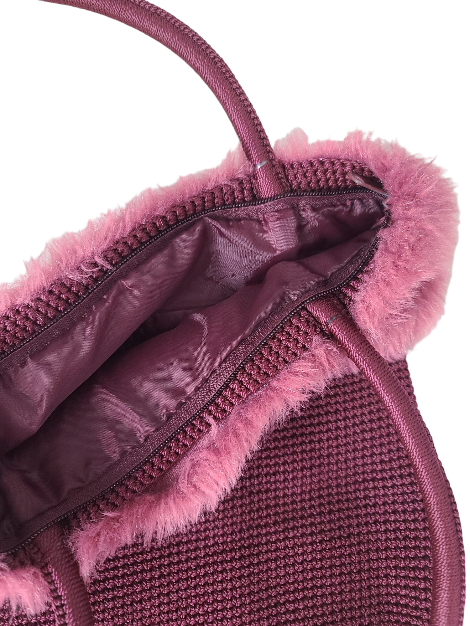 Incredible archive from the 90s. Vintage khaki tight-knit bag with faux fur. Harajuku style. Rare.