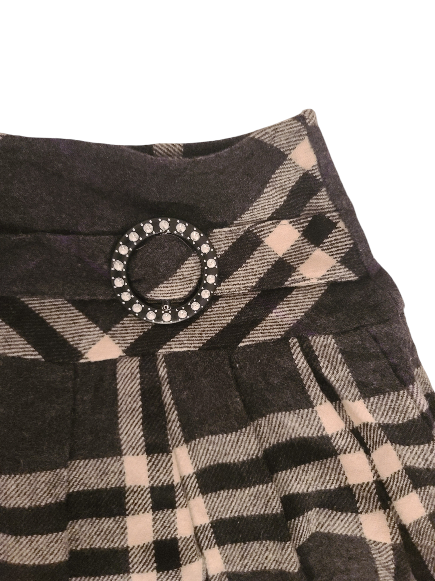 Gorgeous vintage 90s black and white pleated plaid skirt with ring belt.