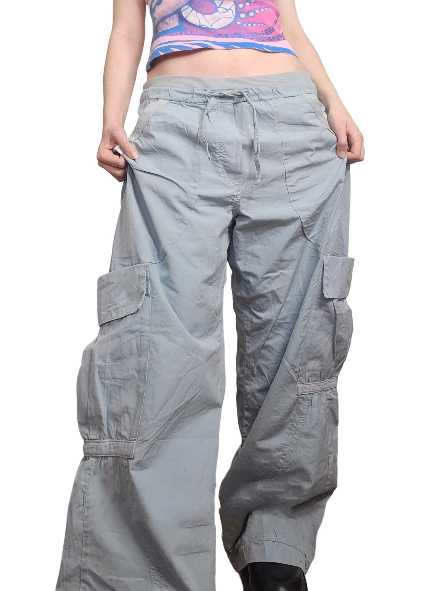 Beautiful sky blue parachute cargo baggy from the 90s. Drawstrings at the waist.