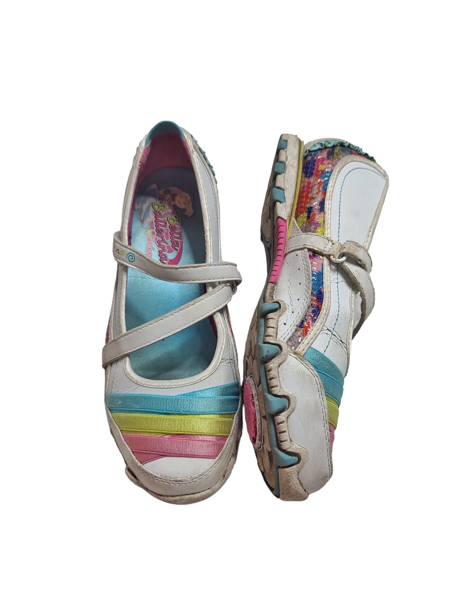 Very beautiful white sportswear kidcore vintage ballerinas from the 90s. Details with its multi-colored intertwined threads.