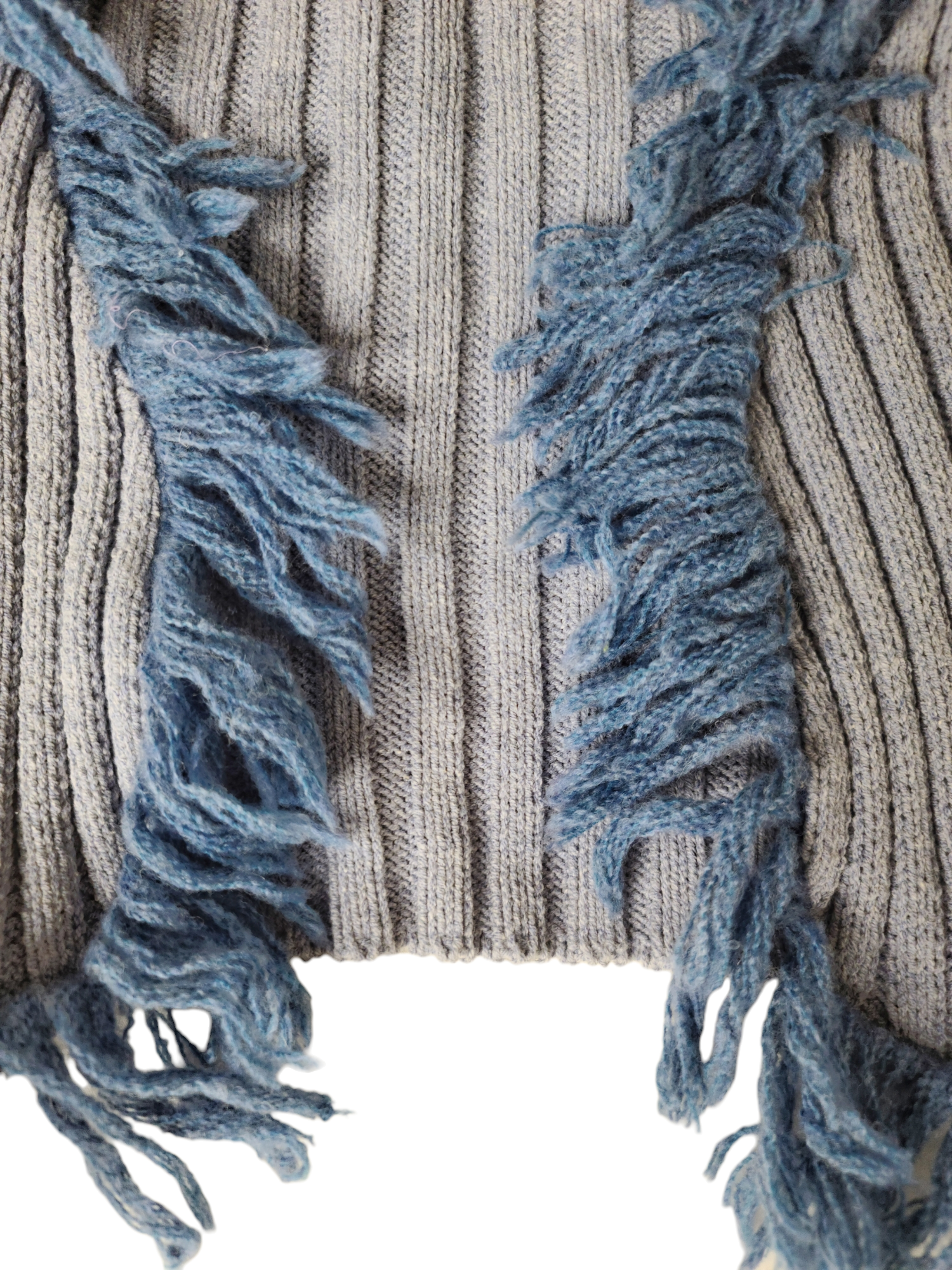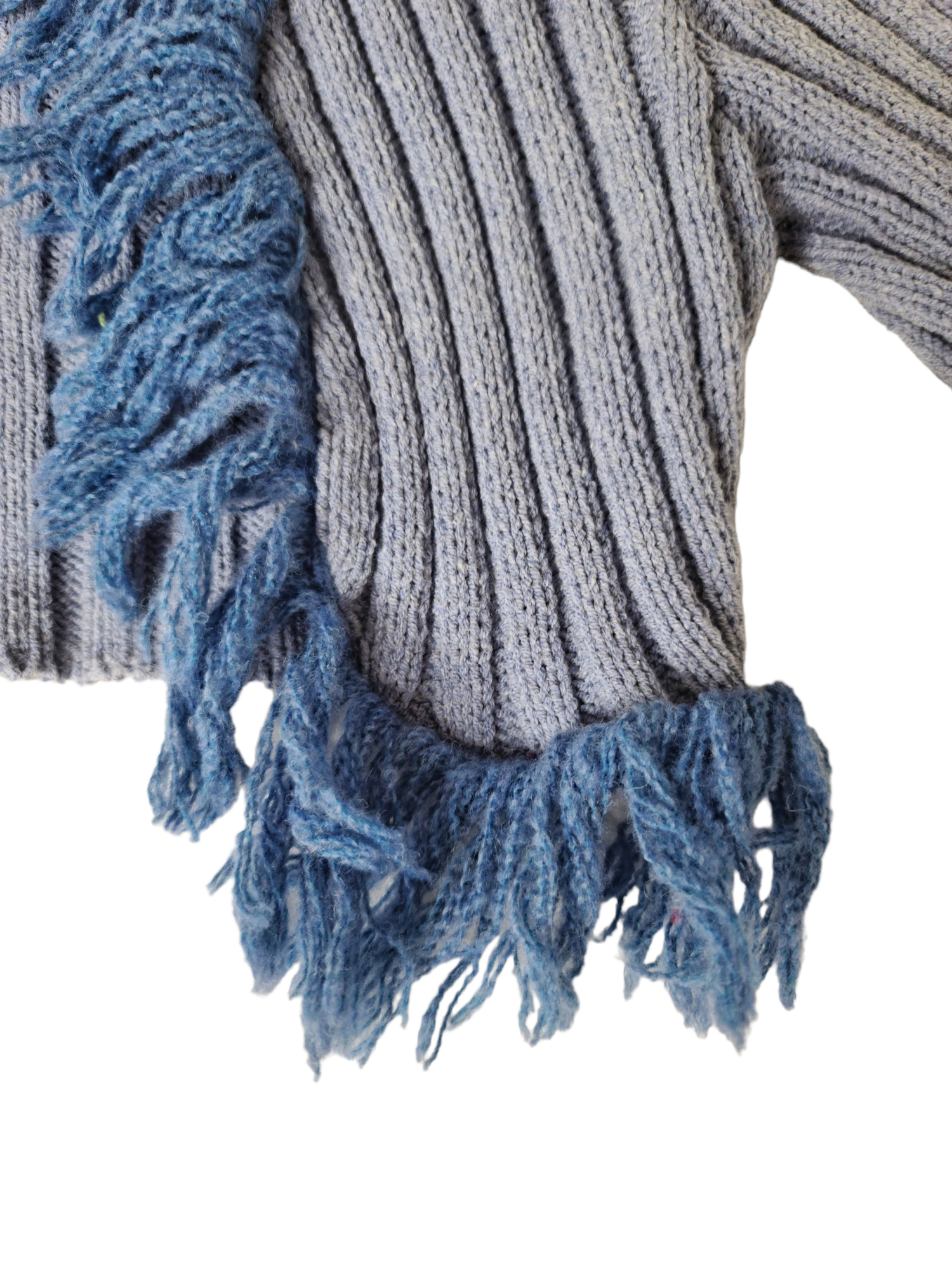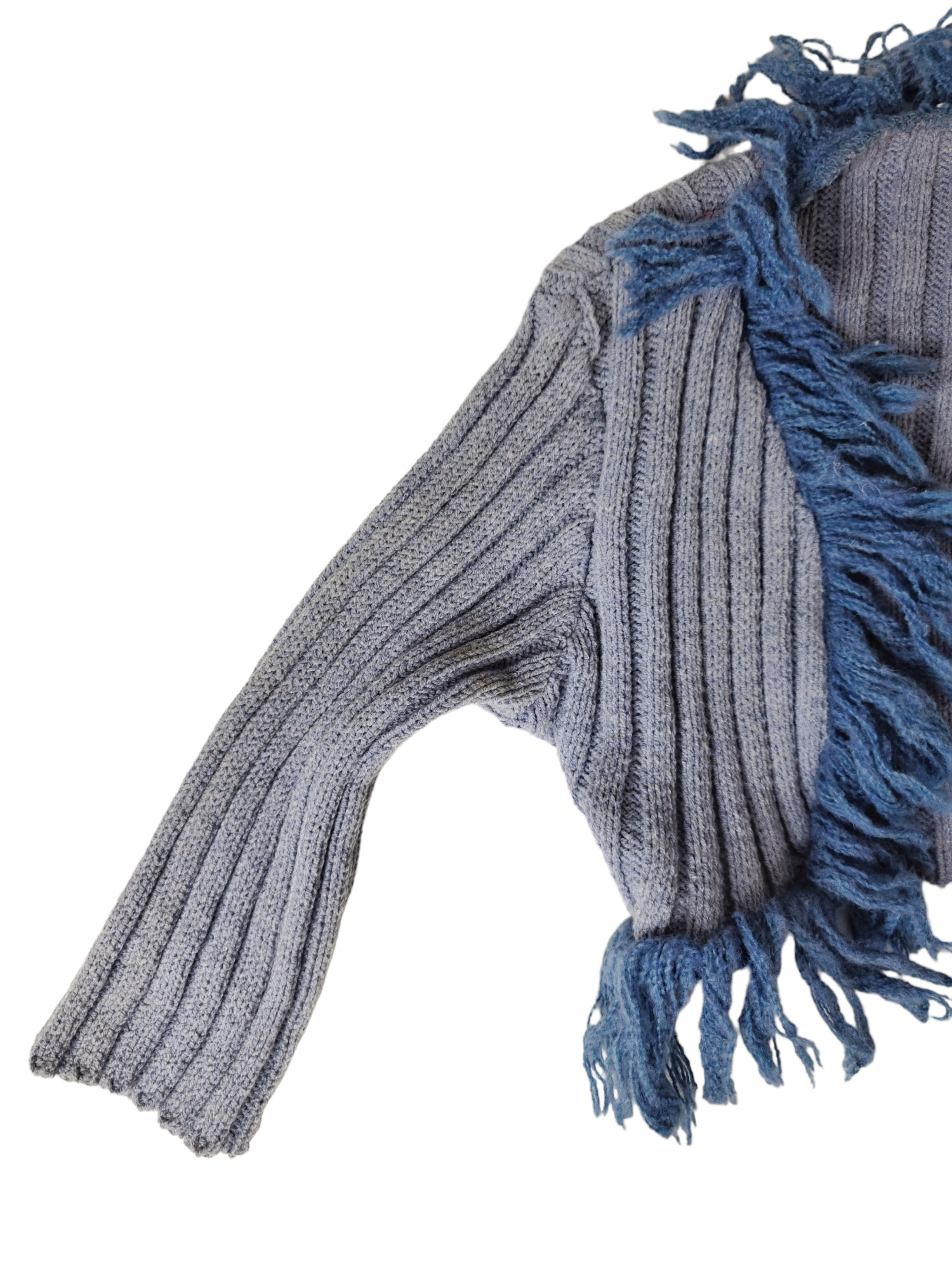 Beautiful purple ribbed bolero from the 2000s, short sleeves, blue fringed collar.