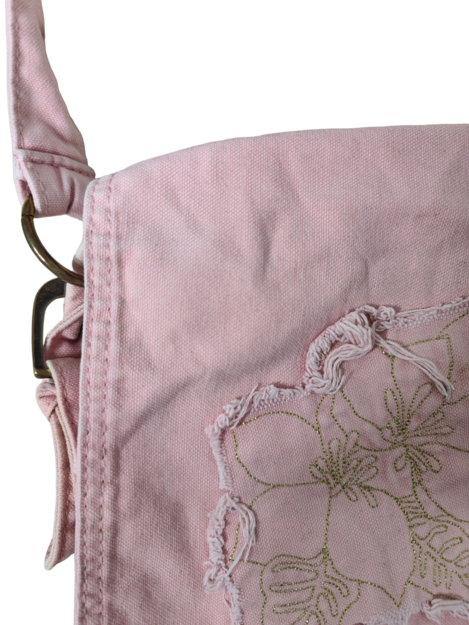 Very beautiful little vintage fairygrunge 90s pastel pink shoulder bag. Destroyed flower details.