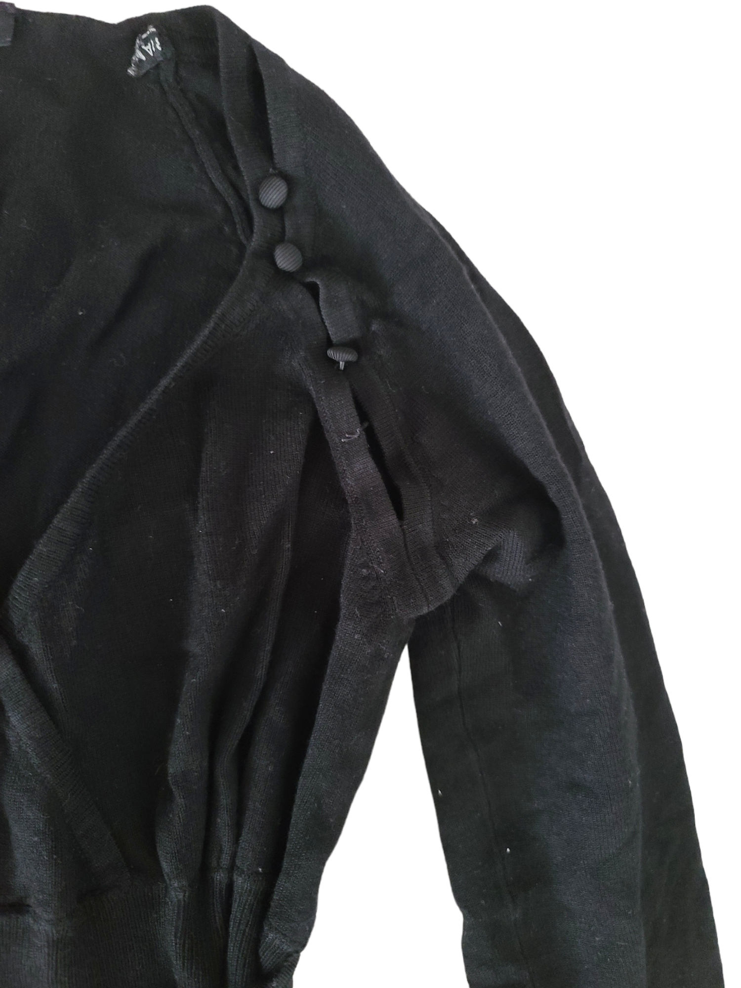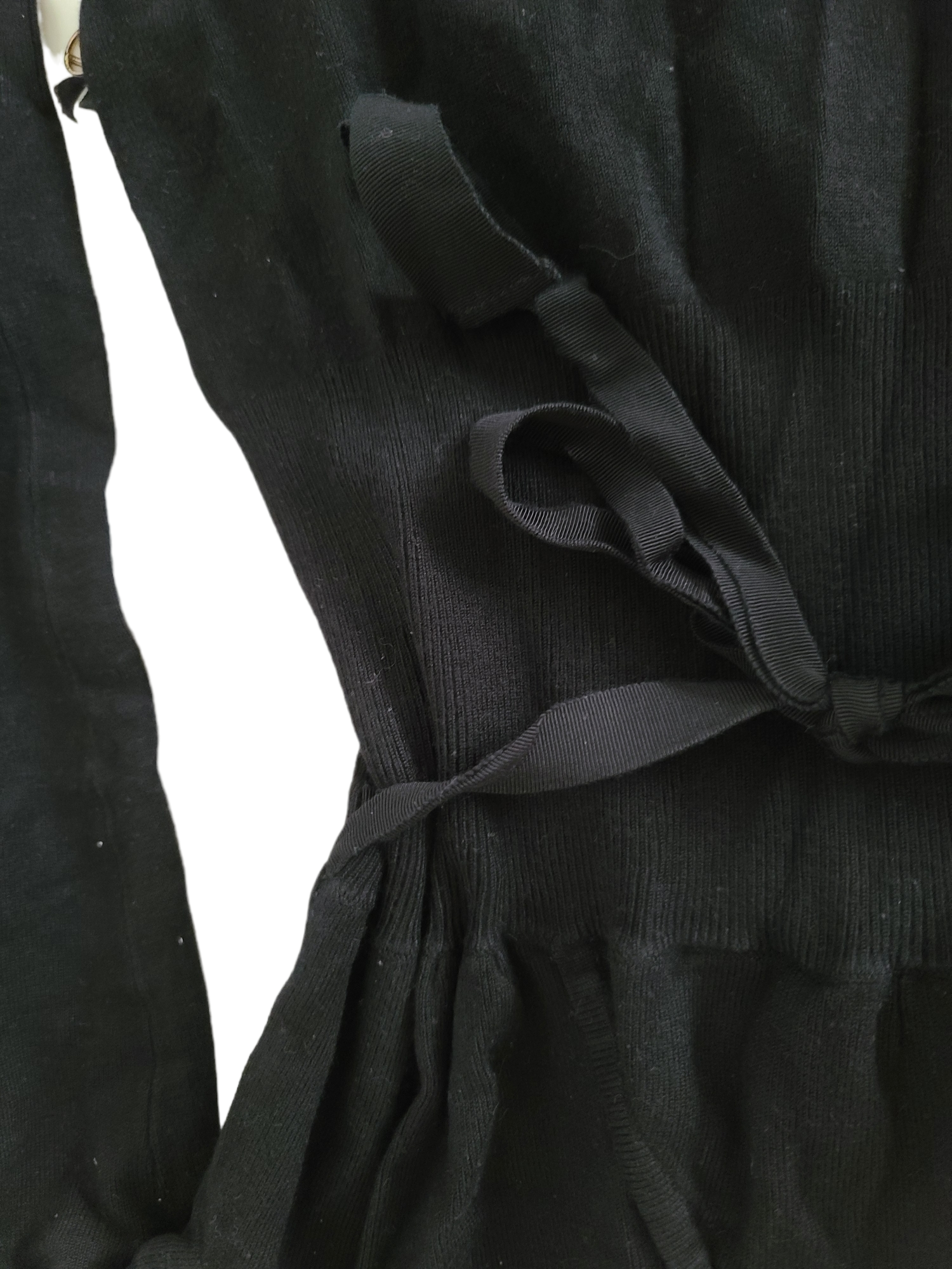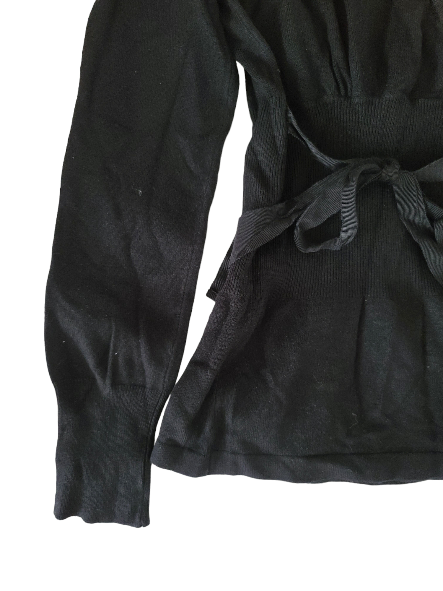 Very beautiful black Morgan coquette downtown top with long sleeves and buttons on the shoulders. Fitted waist with ribbon to tie.