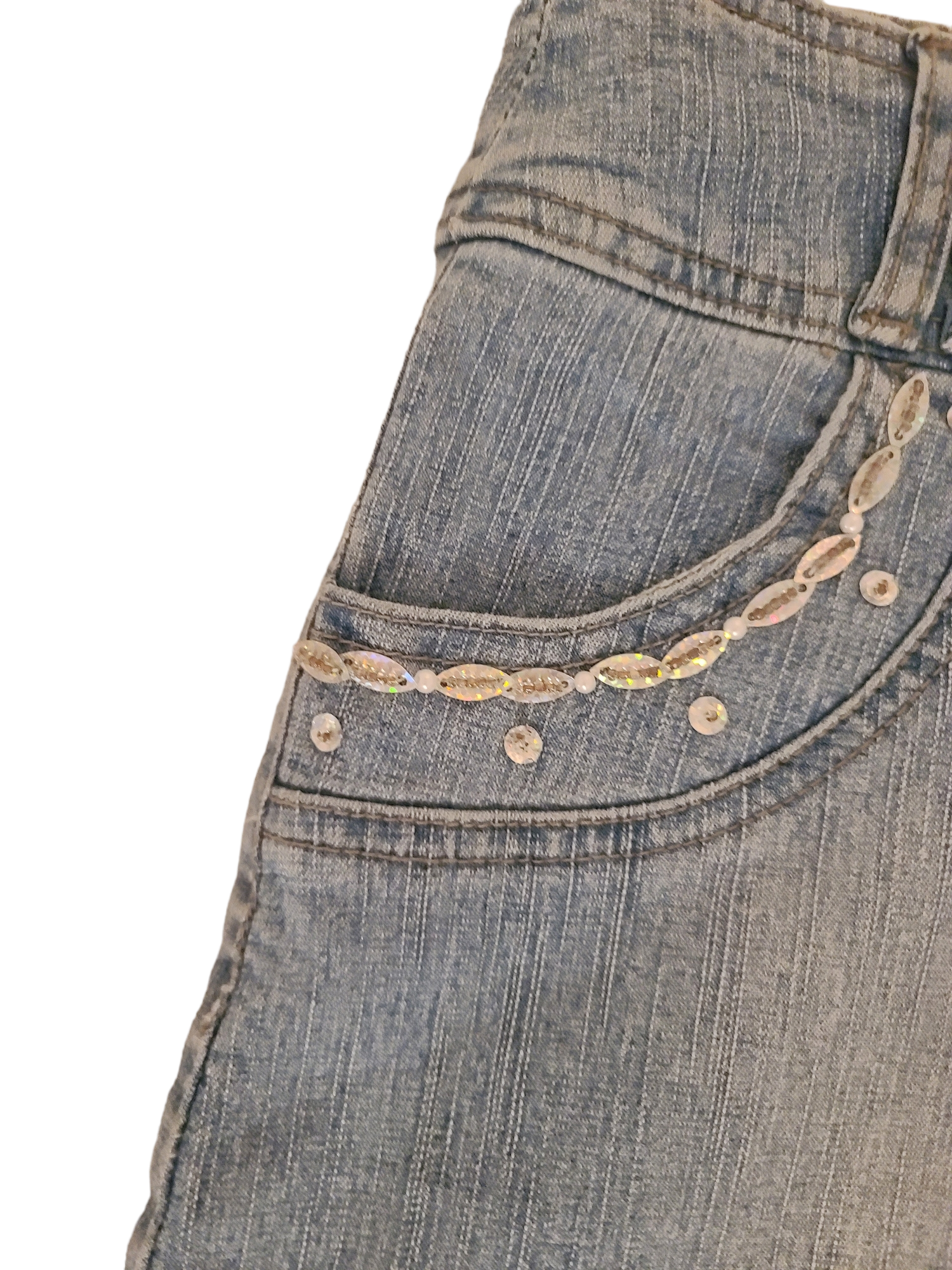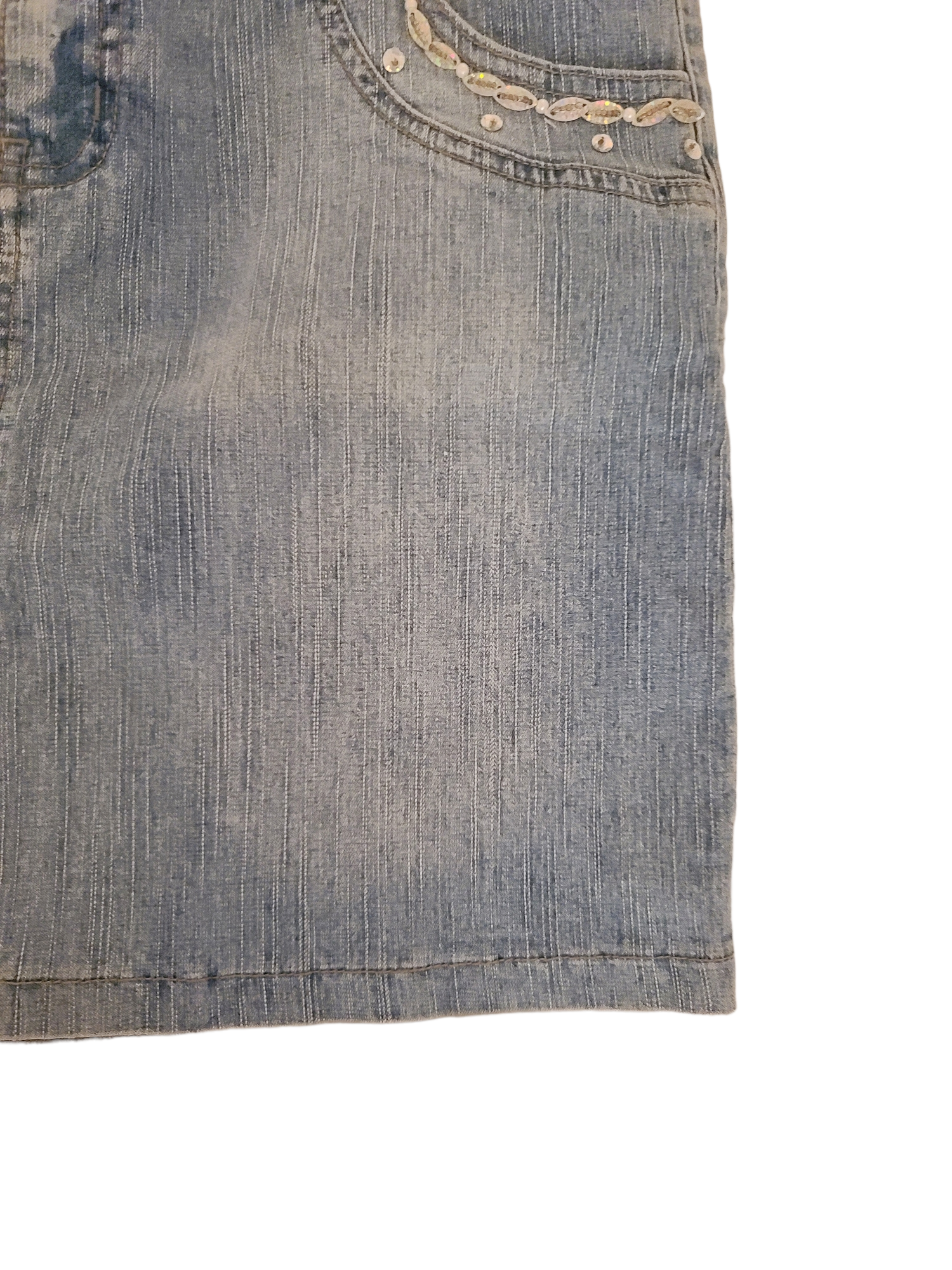 Very beautiful vintage y2k short denim skirt, bimbocore. Rhinestone and pearl details.