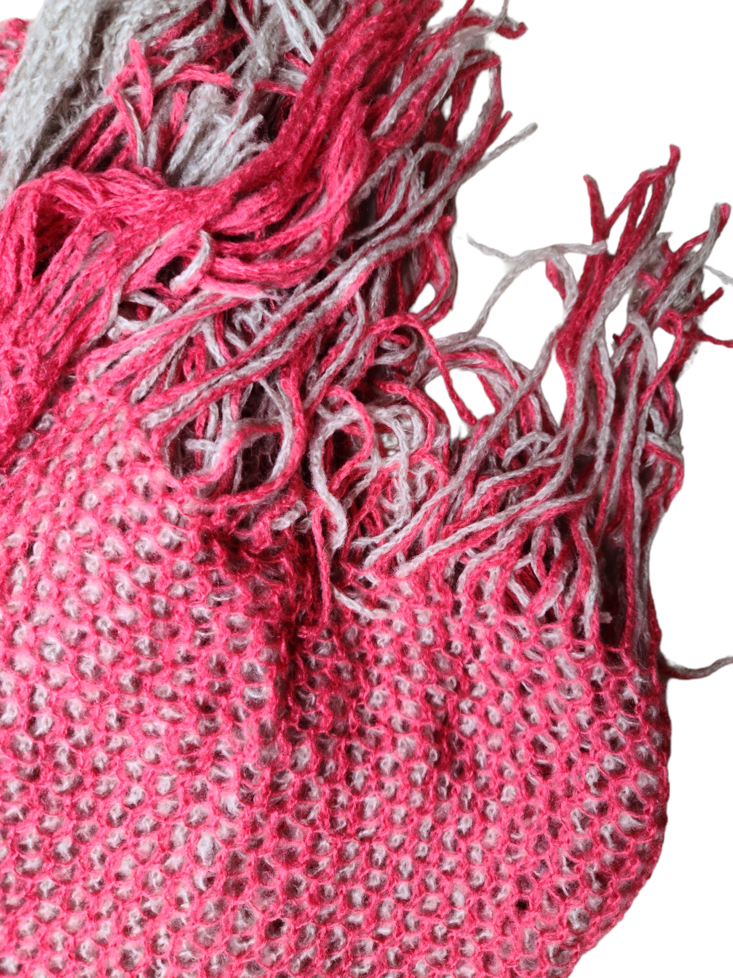 Very cute pink and gray knitted hat with small star knot pin details + very large scarf to go with it. Harajuku style.