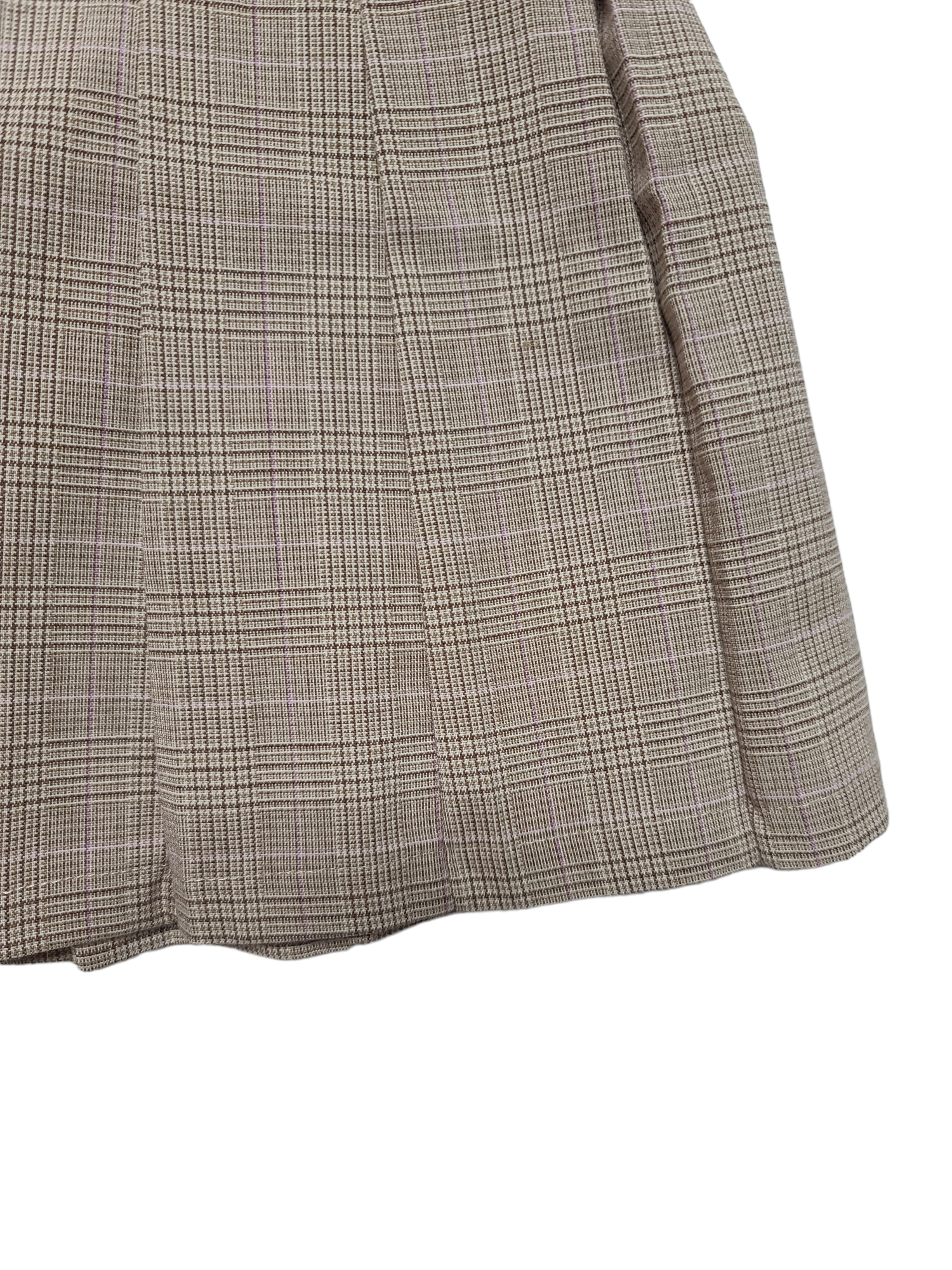 Very beautiful vintage brown and beige acubi pleated mini skirt, tartan. Grunge neutral style.