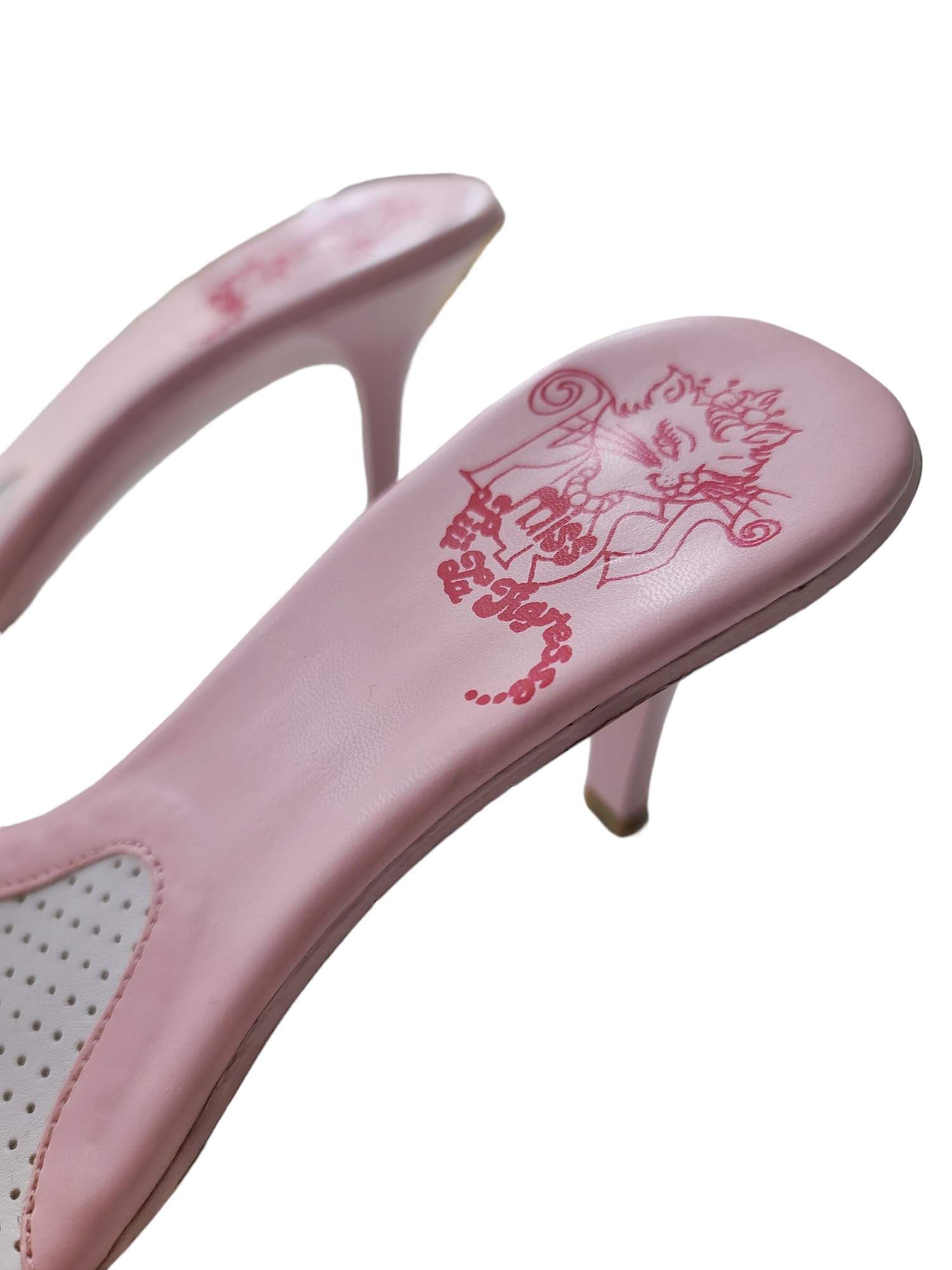 Amazing pair of pink heeled mules from the 2000s. Y2k barbiecore coquette, mcbling model.