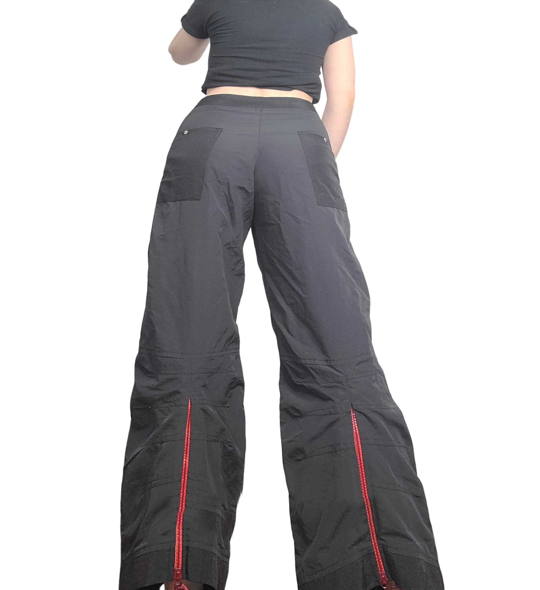 Very nice harajuku parachute pants wide legs with red zippers at the back of the legs.
