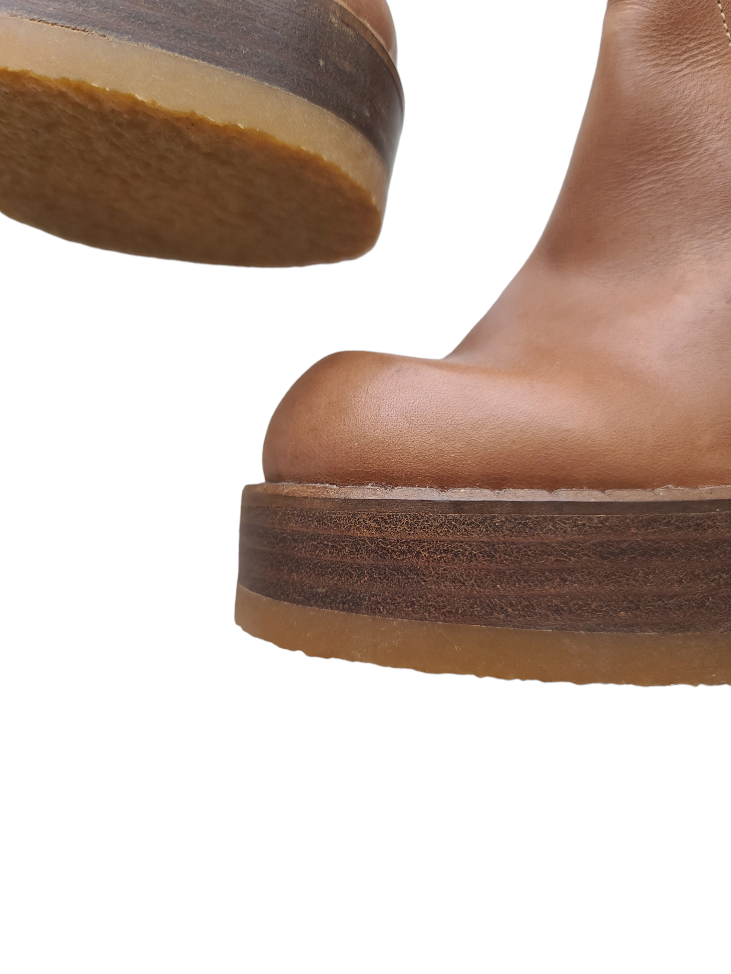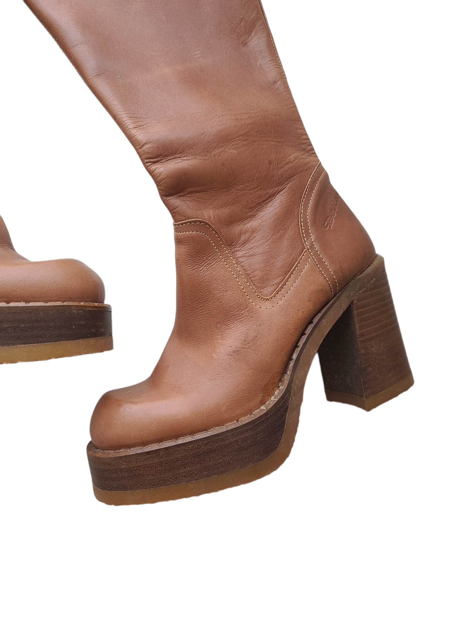 Amazing vintage 90s brown platform boots. Square heels and toes. Grunge style. Archive.