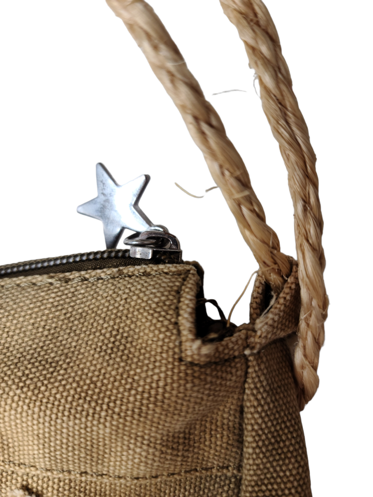 Amazing vintage fairygrunge y2k destroy taupe brown bag. Star details and drawstring handle. Star zipper. Small inside pocket.