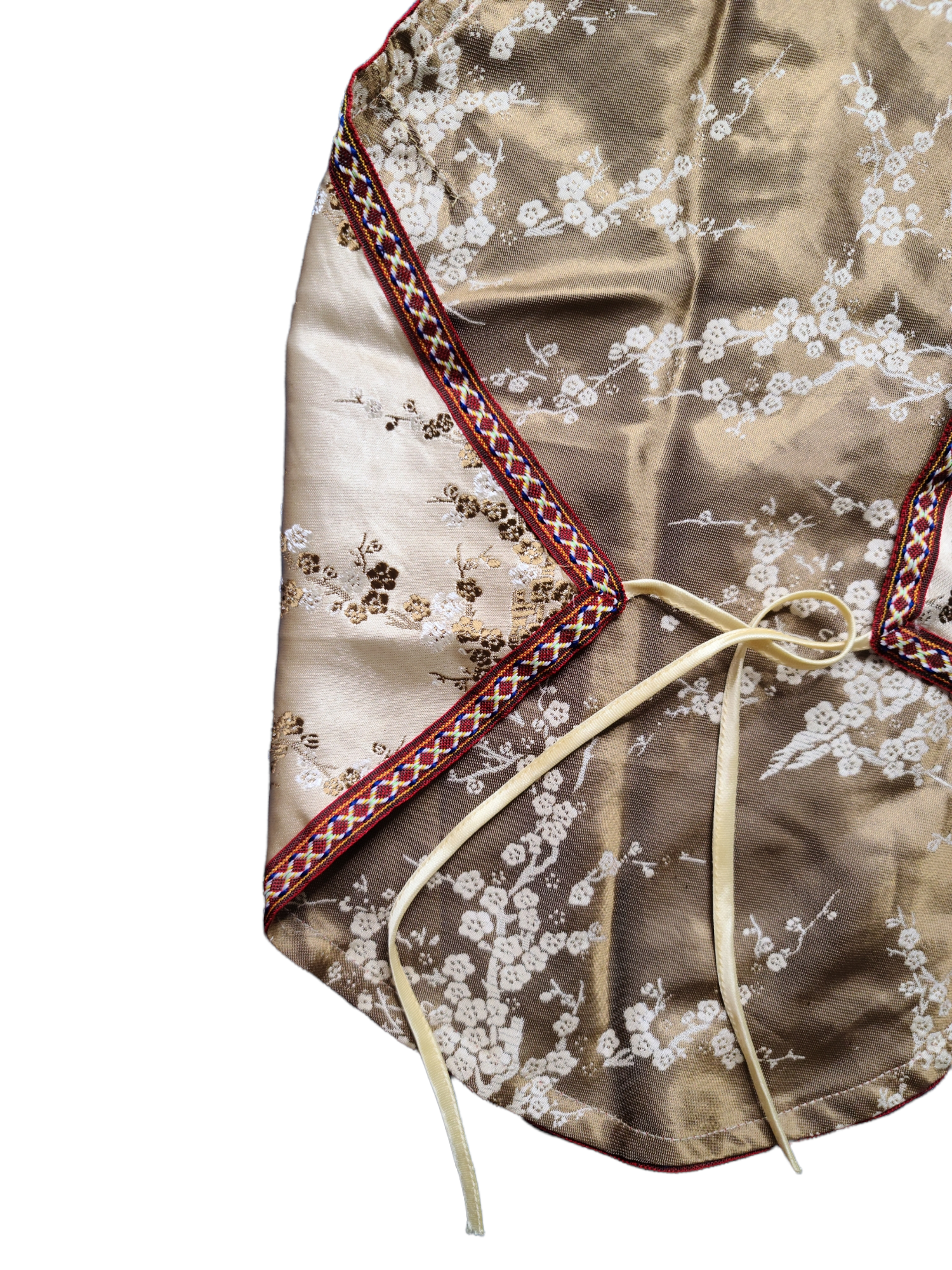 Beautiful vintage backless top with Asian pattern. Lace-up neck and back.