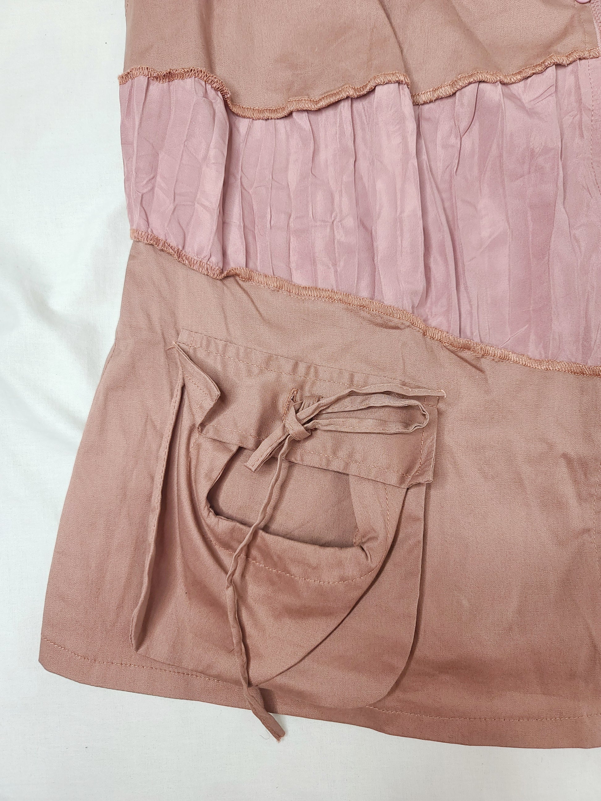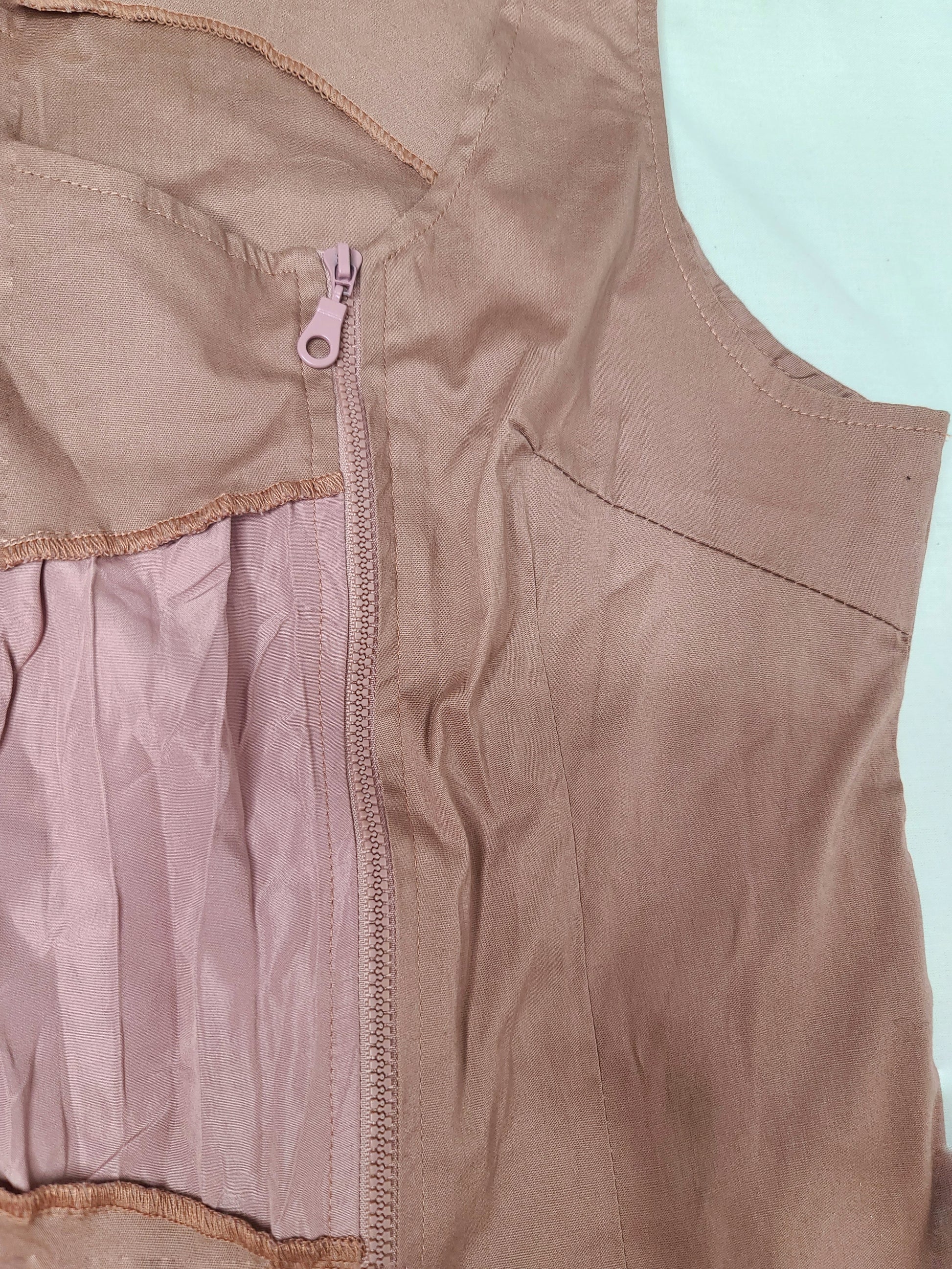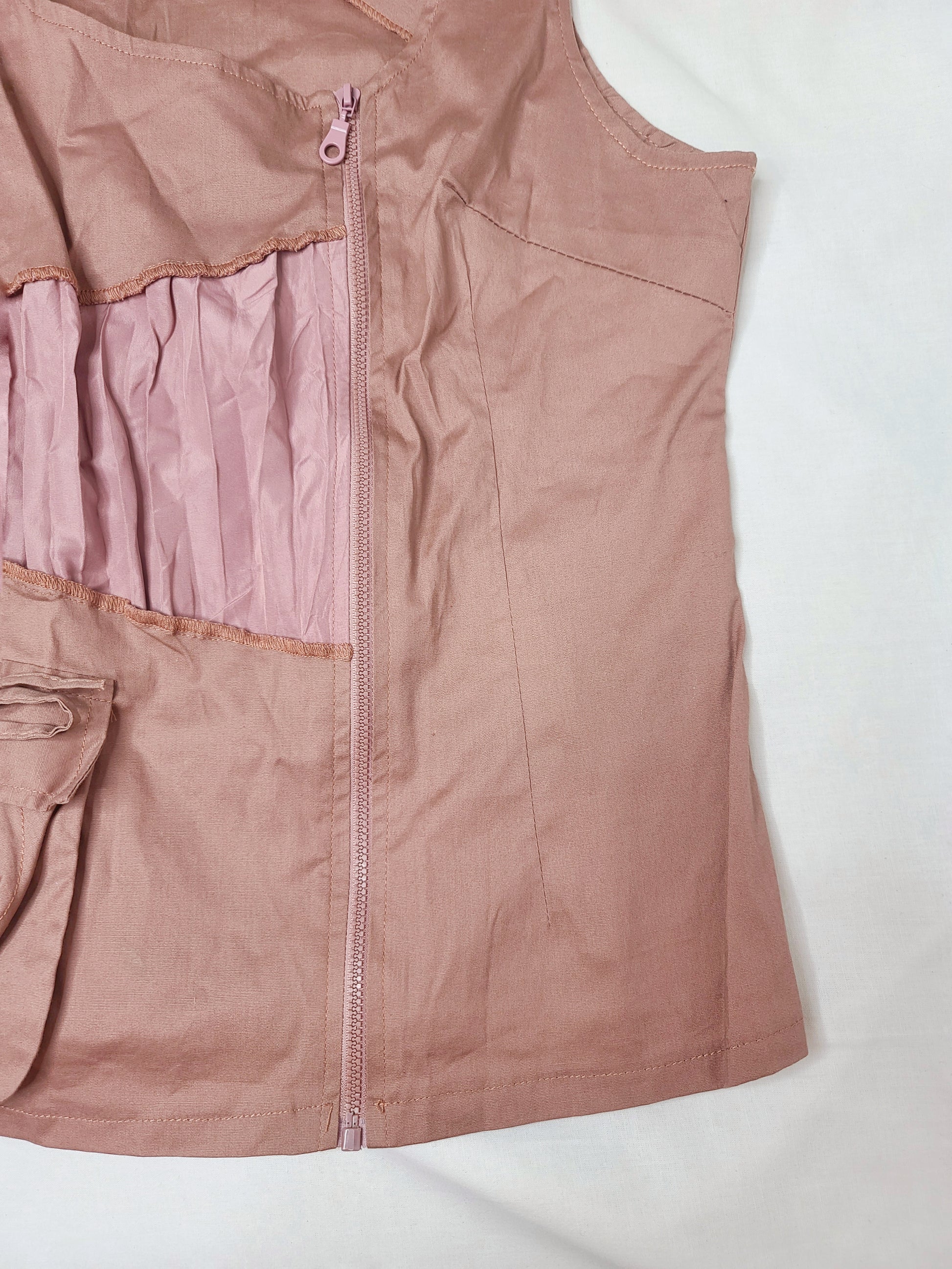 Beautiful vintage brown/purple gorpcore top with techwear elements. Asymmetrical zip details, puff pocket and gathered texture.