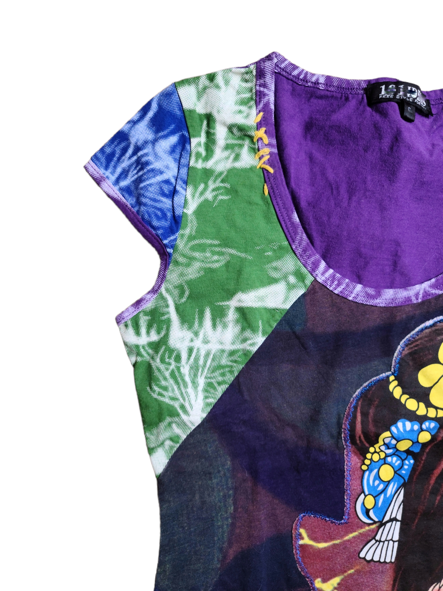 Amazing vintage top printed maximalistharajuku, oriental manga pattern. Archive.
