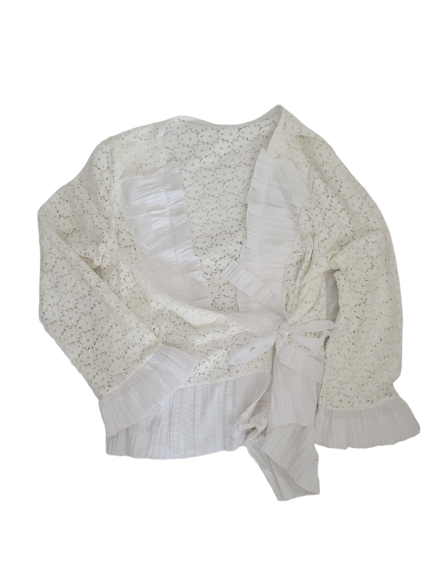 Gorgeous 2000s y2k vintage flirty lace cardigan, white. Long and wide sleeves, bohemian fairycore style. Exclusive model.