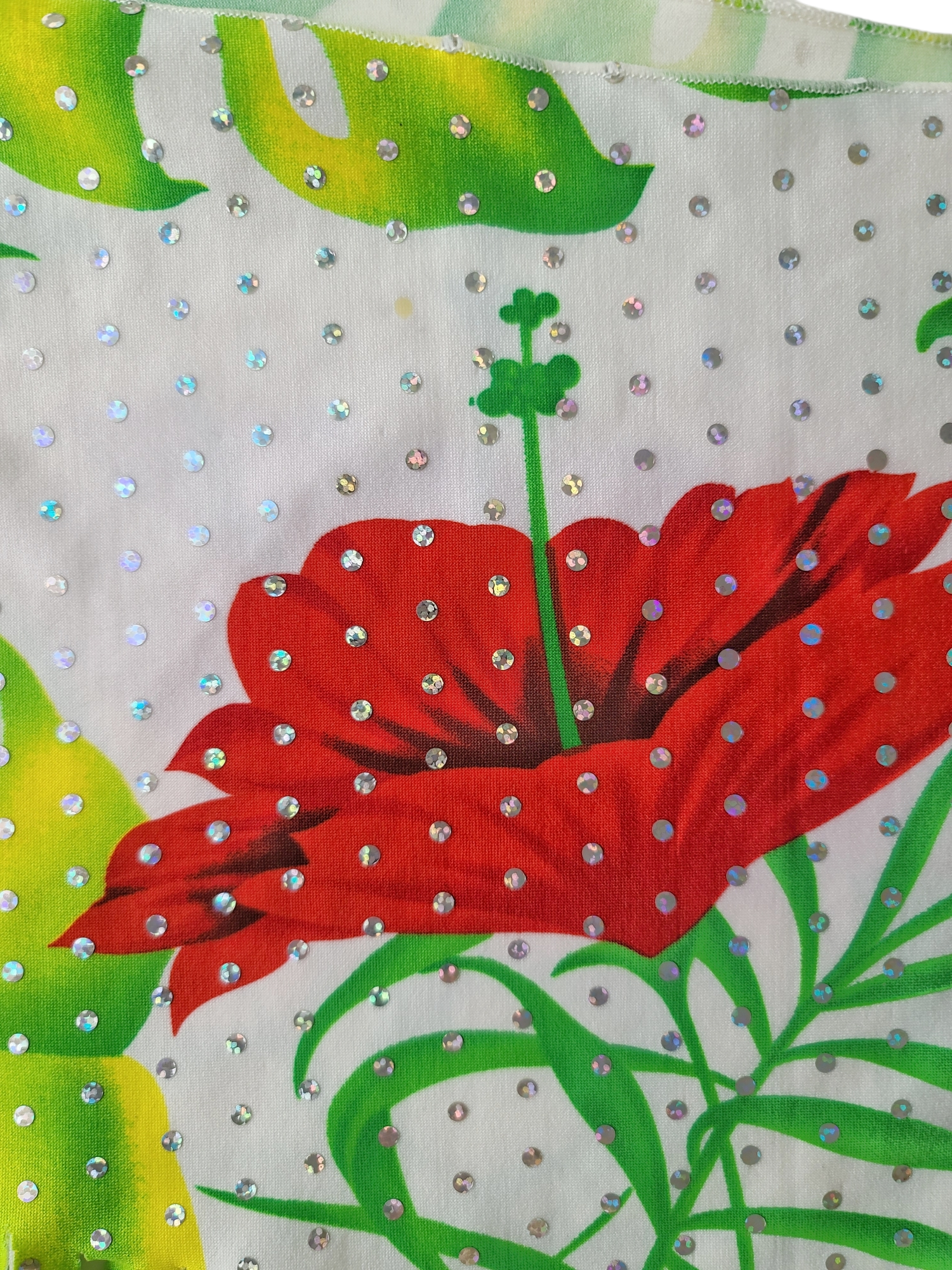 Very beautiful beachwear asymmetric fringed fabric belt with rhinestones and floral print