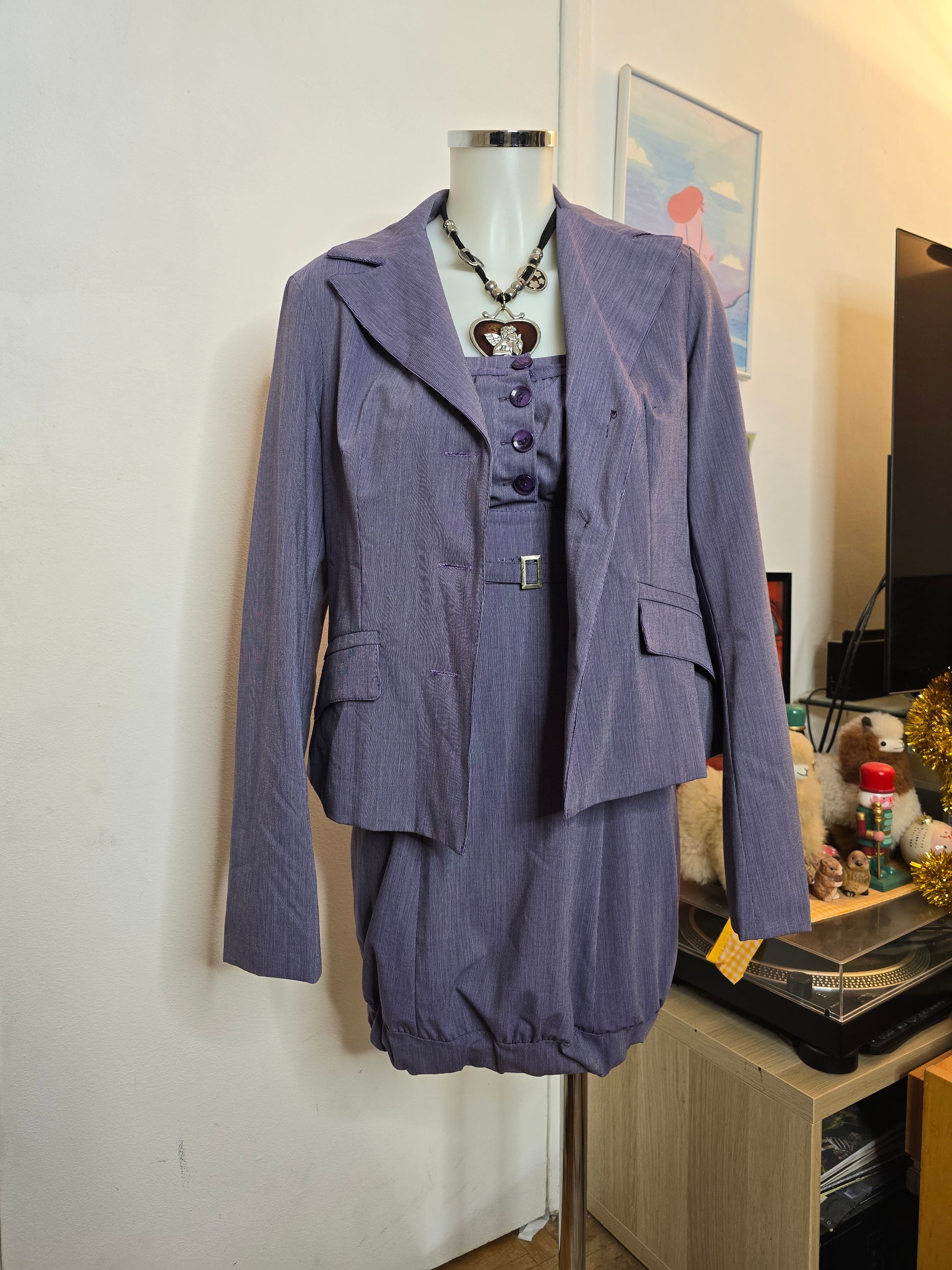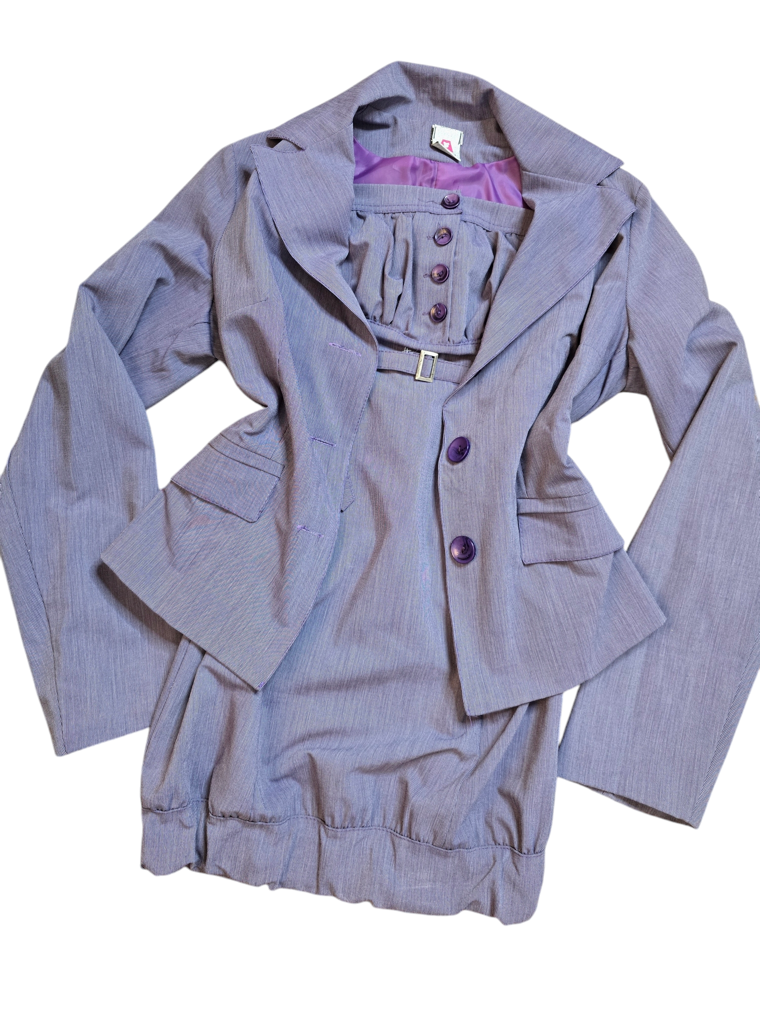 Y2k flirtatious officecore striped set bustier dress + jacket