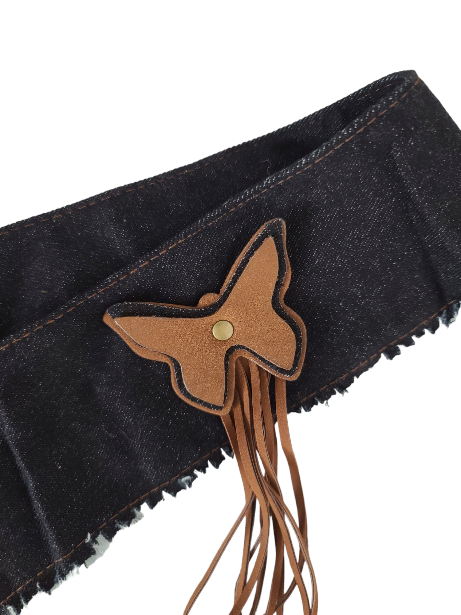 Very beautiful vintage blue denim y2k belt with butterfly, bohemian fairy style