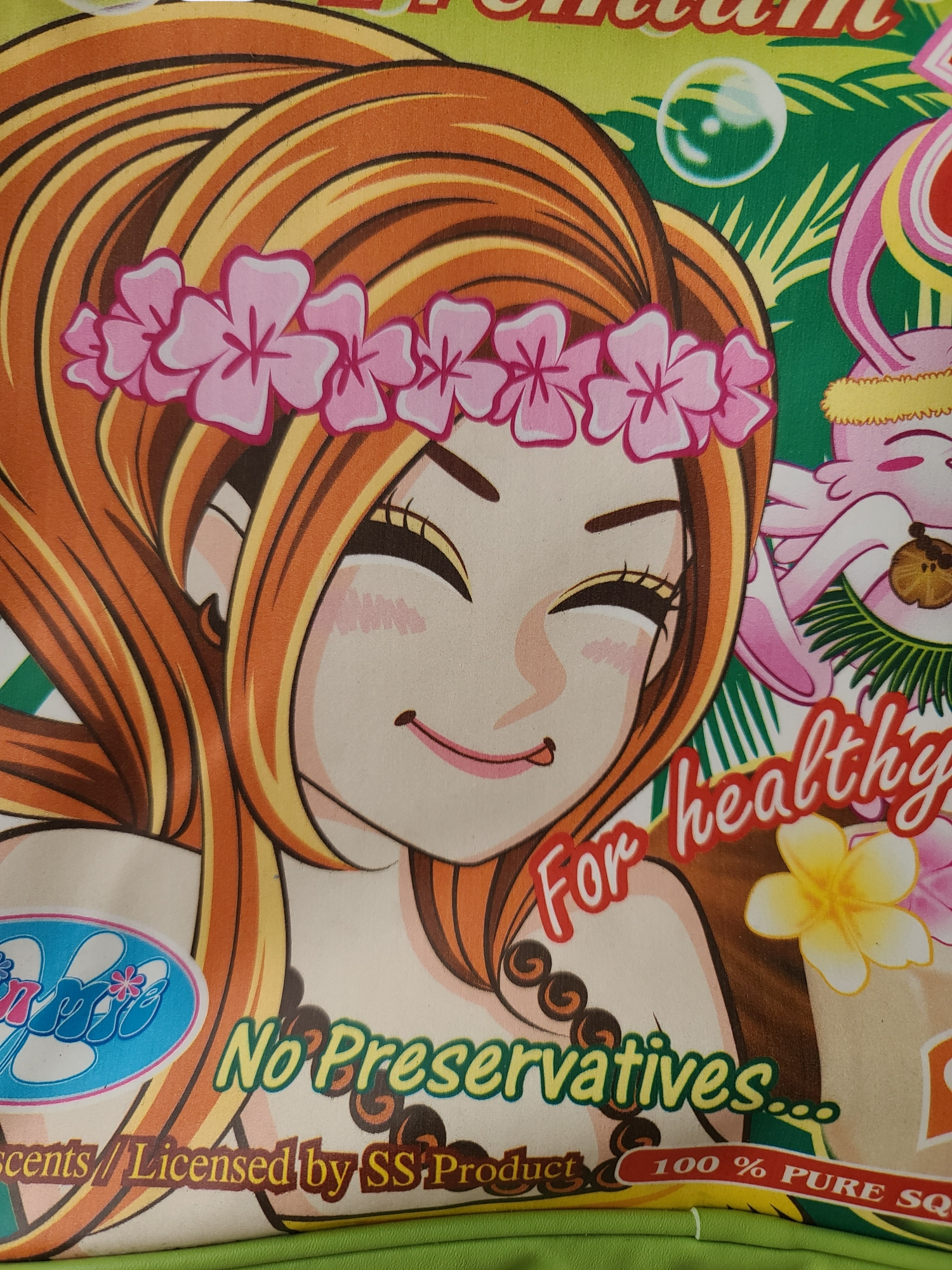 Amazing archive unique beachwear shoulder bag harajuku kidcore vintage y2k. Green anime print, coconut and hibiscus pattern. Fruit magazine style. Rare Japanese model.