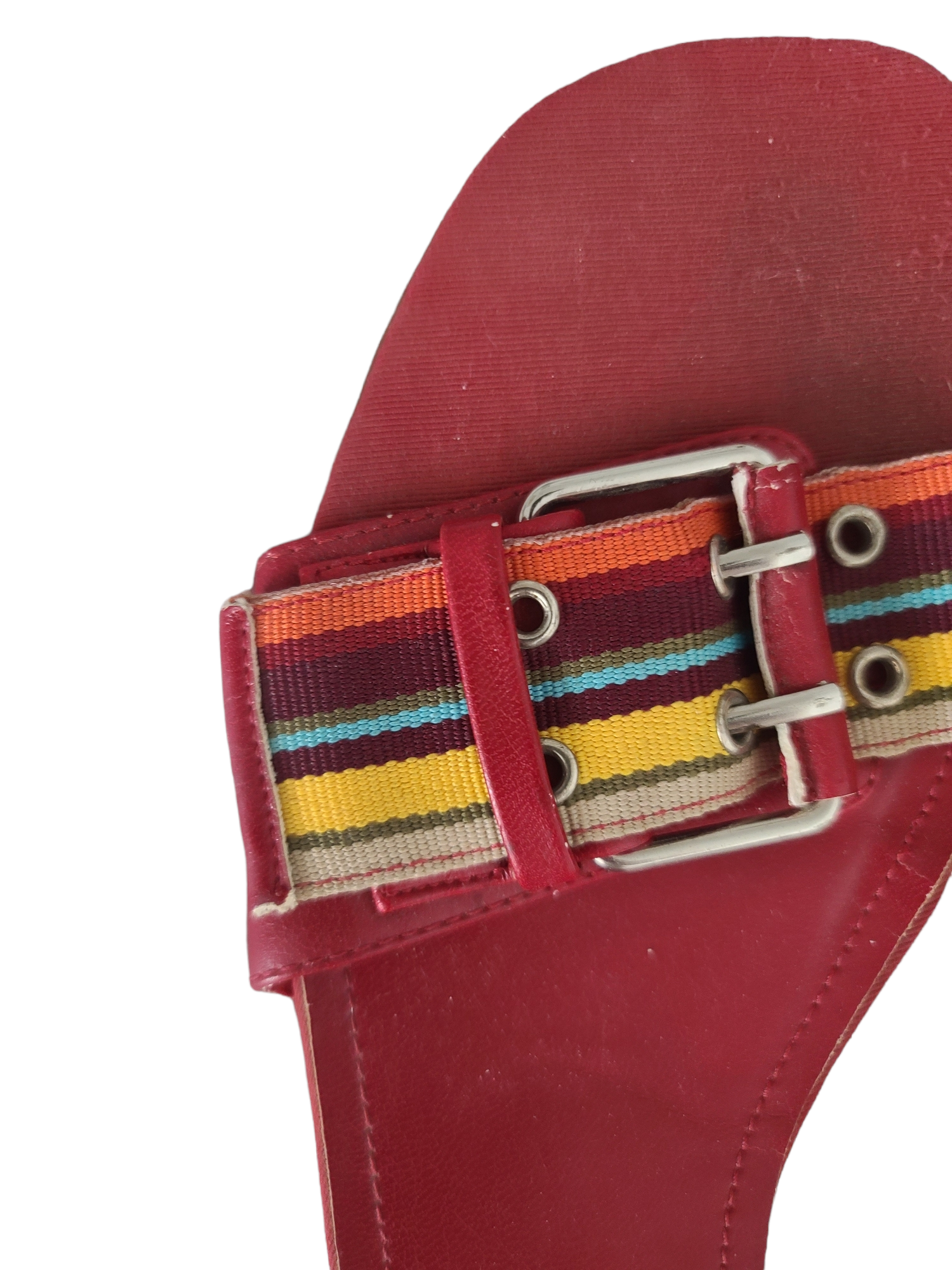 Beautiful y2k red kitten heels, with striped straps and eyelets