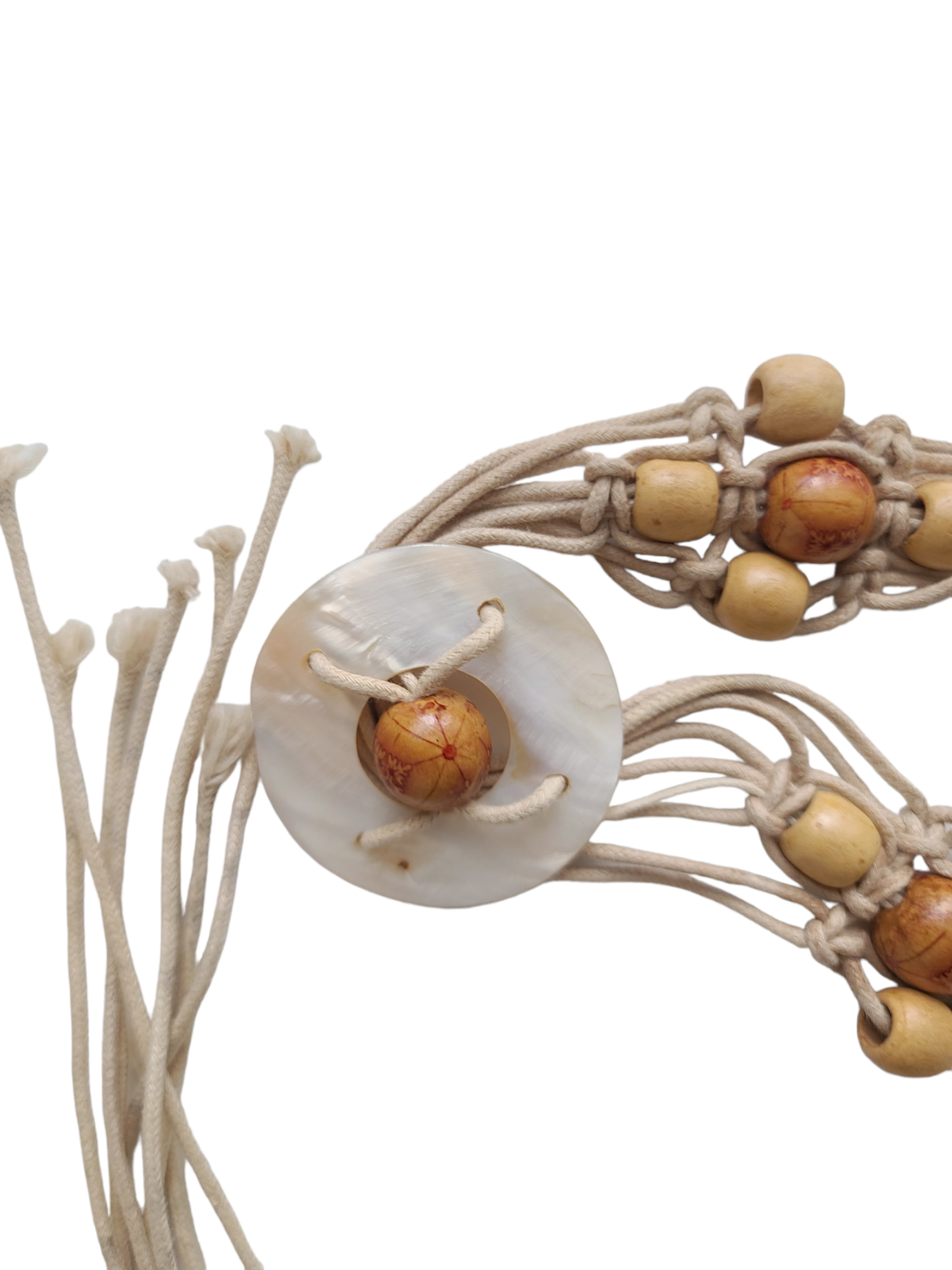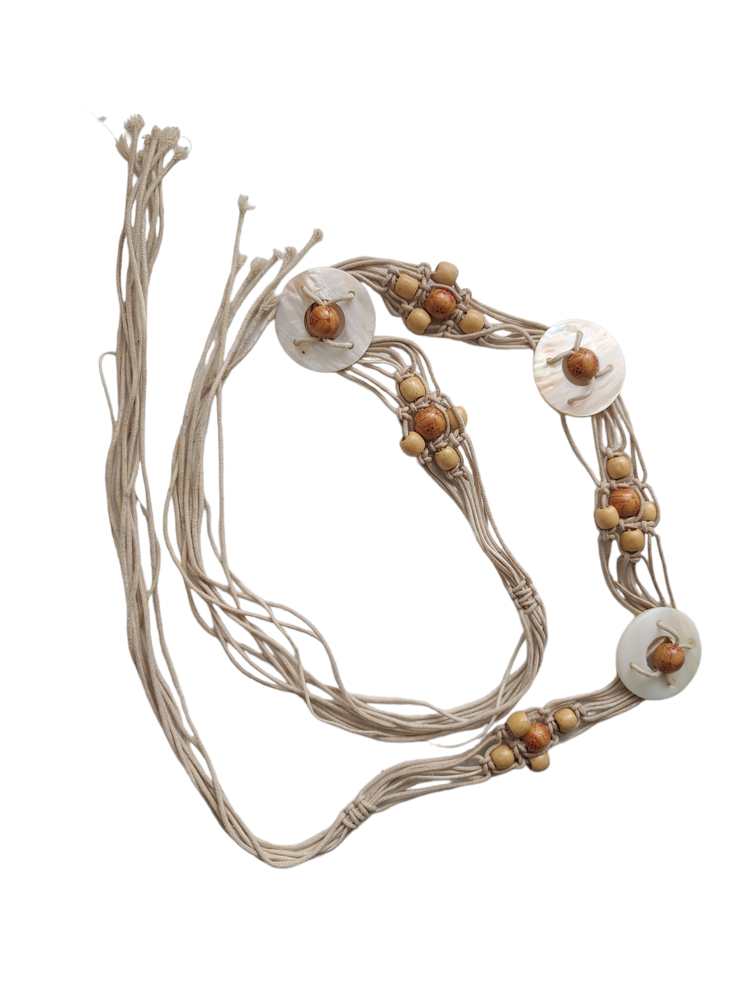 Very beautiful vintage beige belt y2k from the 2000s, bohemian style. Braided with rings