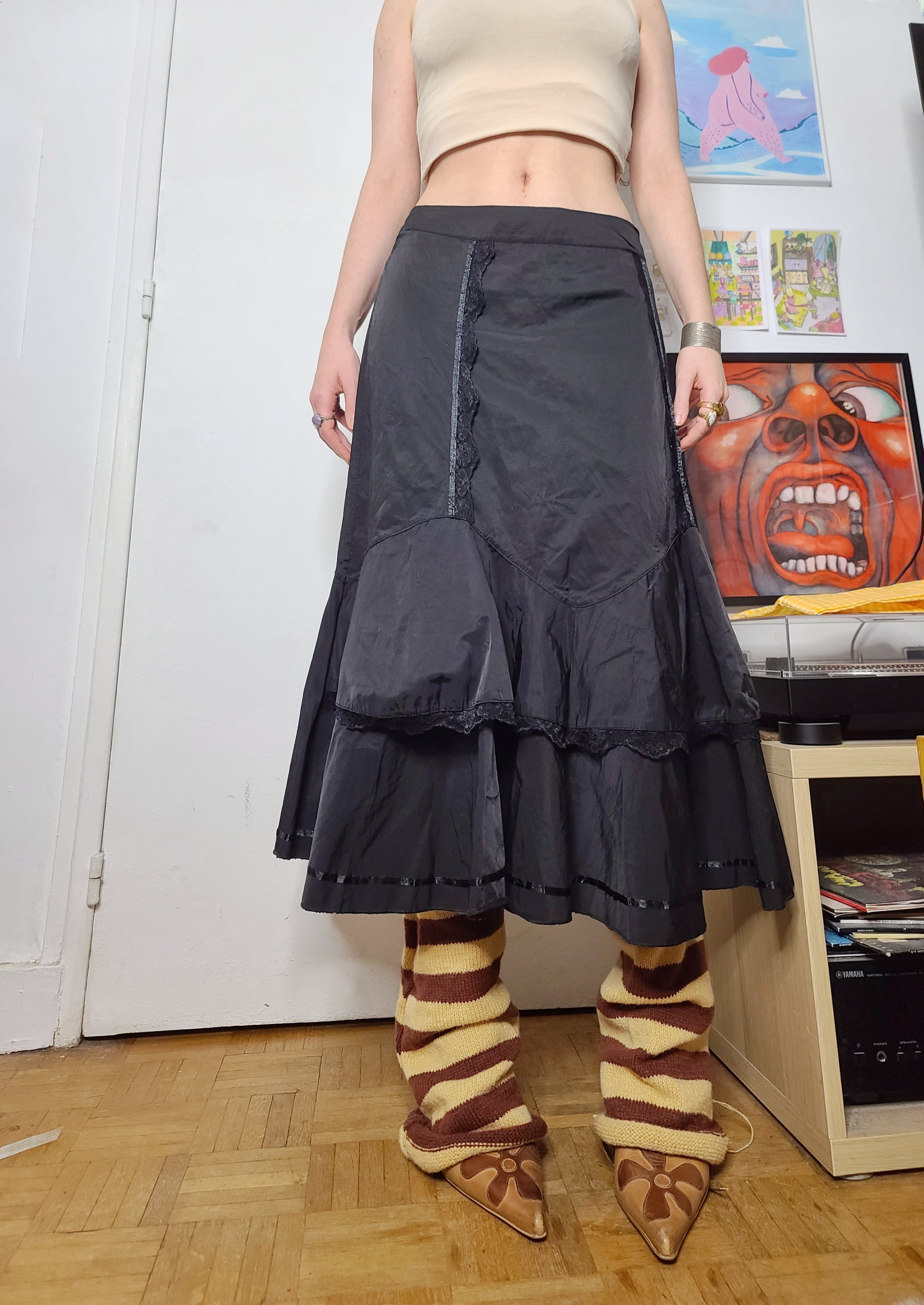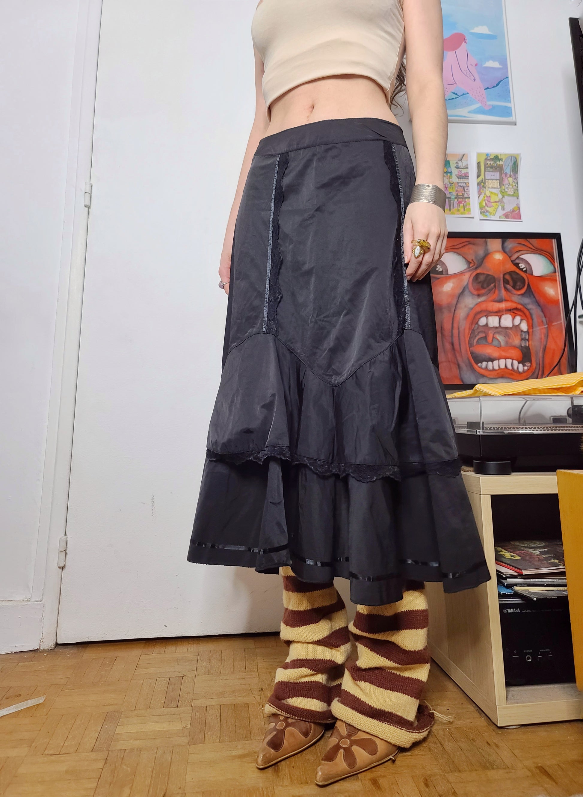 Very beautiful vintage black skirt from the 2000s, y2k, flirtatious fairy with lace and ruffles