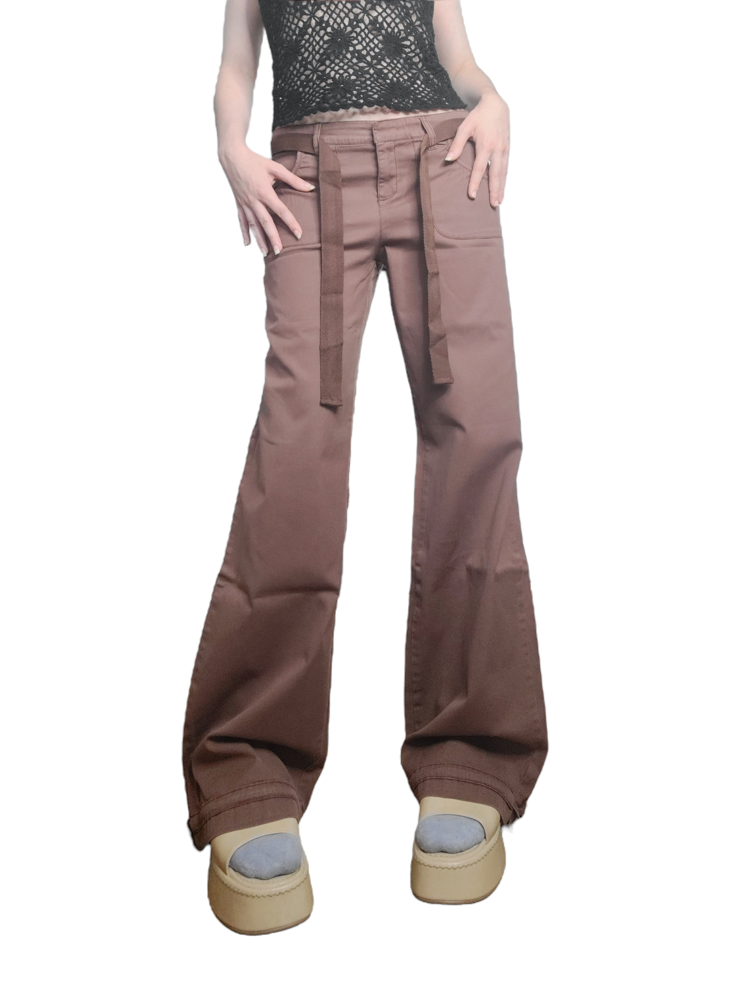 Beautiful vintage brown gorpcore wide cargo, bandeau belt. Neutral style. Gathered pockets.