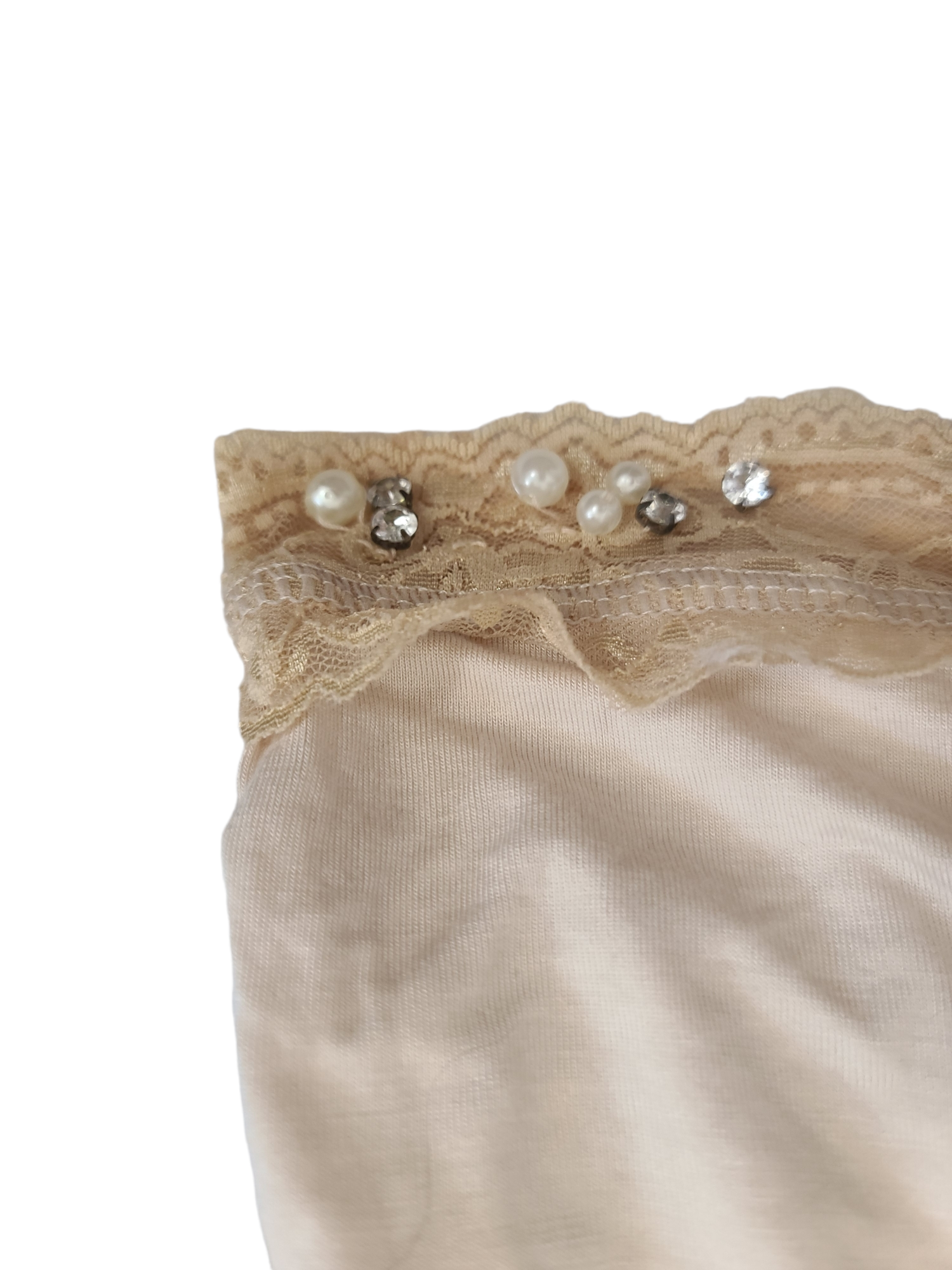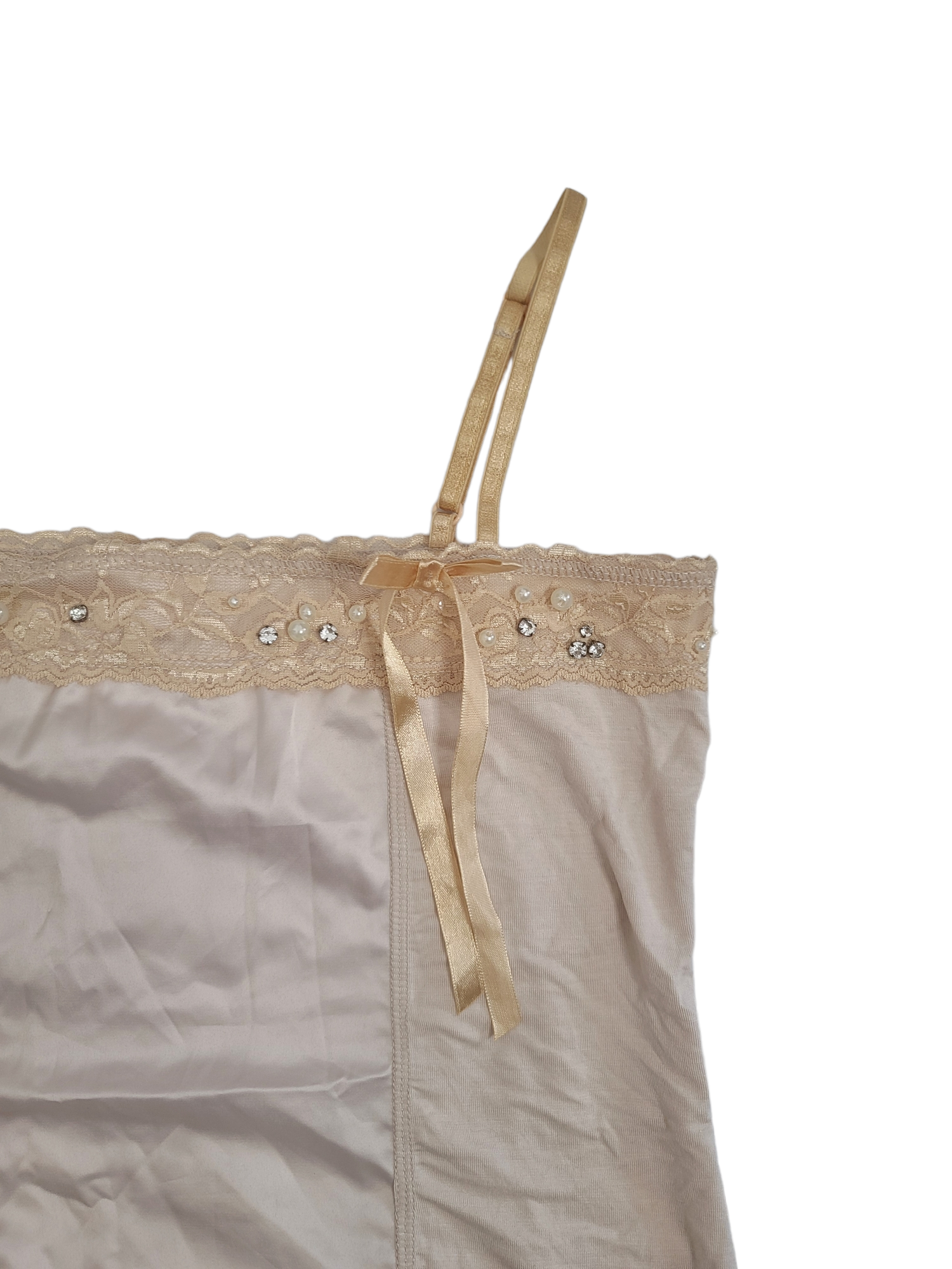 Very beautiful y2k vintage coquette top in powder pink lace. Pearls, rhinestones and ribbon. Archive 2009.