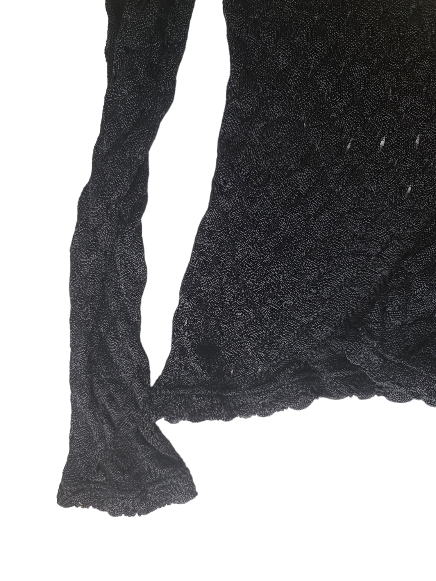 Very beautiful black y2k crochet fairy top, flowing long sleeves with collar.