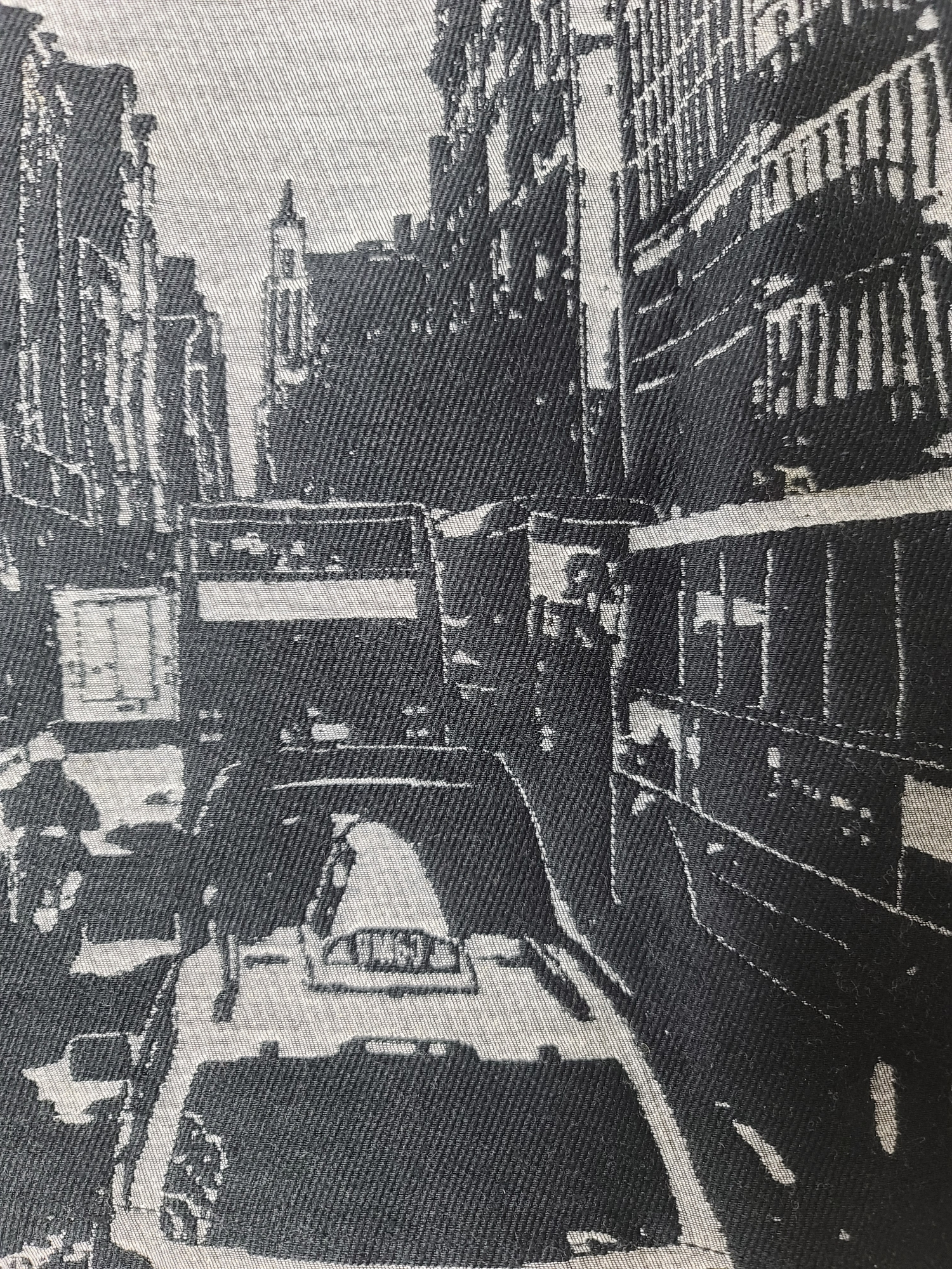Incredible graphic skirt printed New York black and white photography. Dystopian archive.