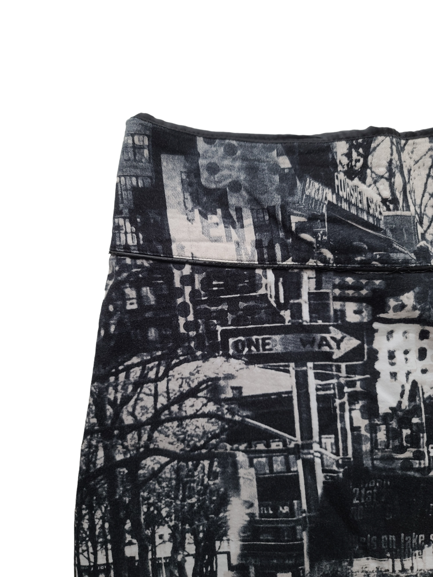 Incredible graphic skirt printed New York black and white photography. Dystopian archive.