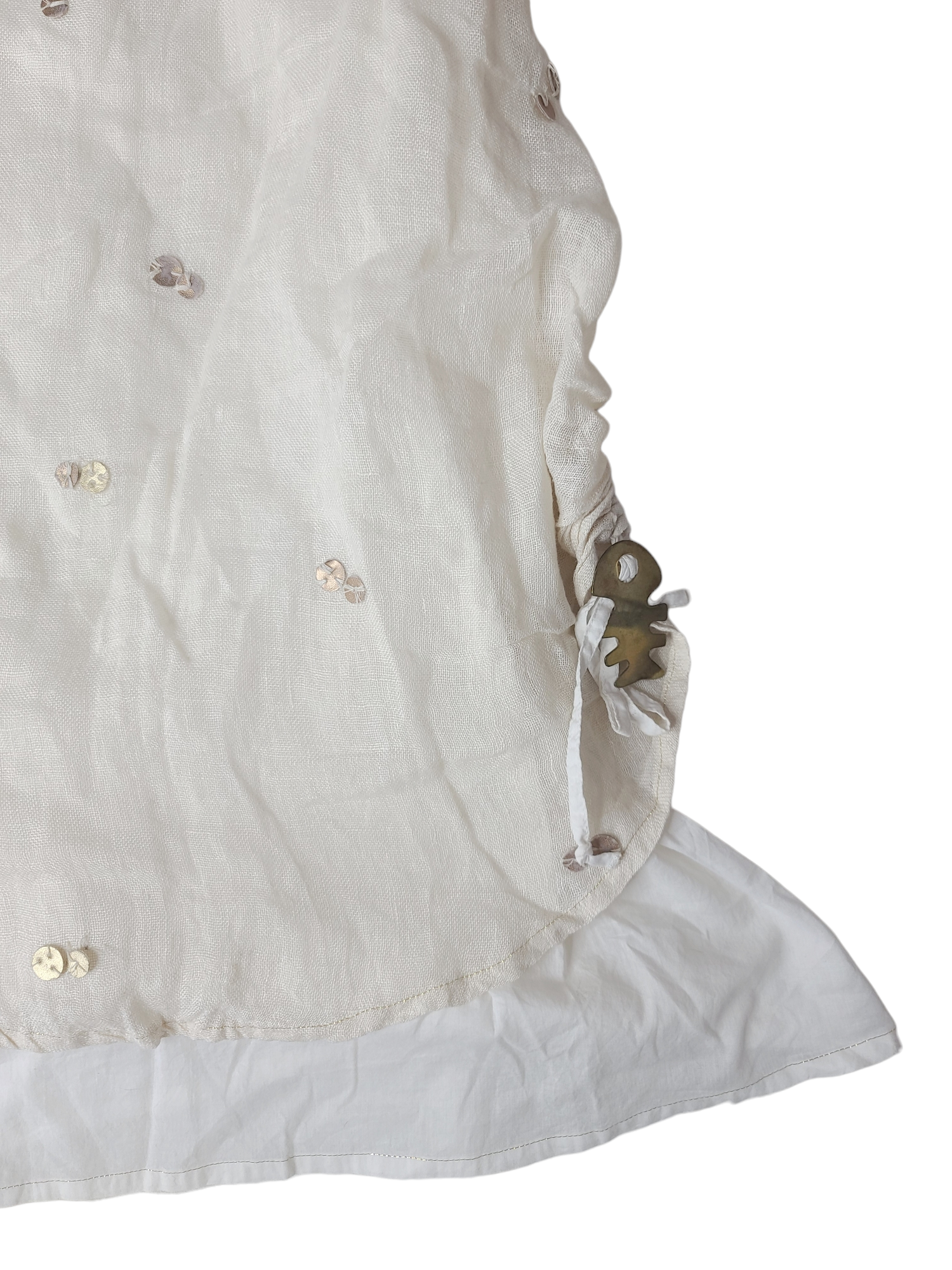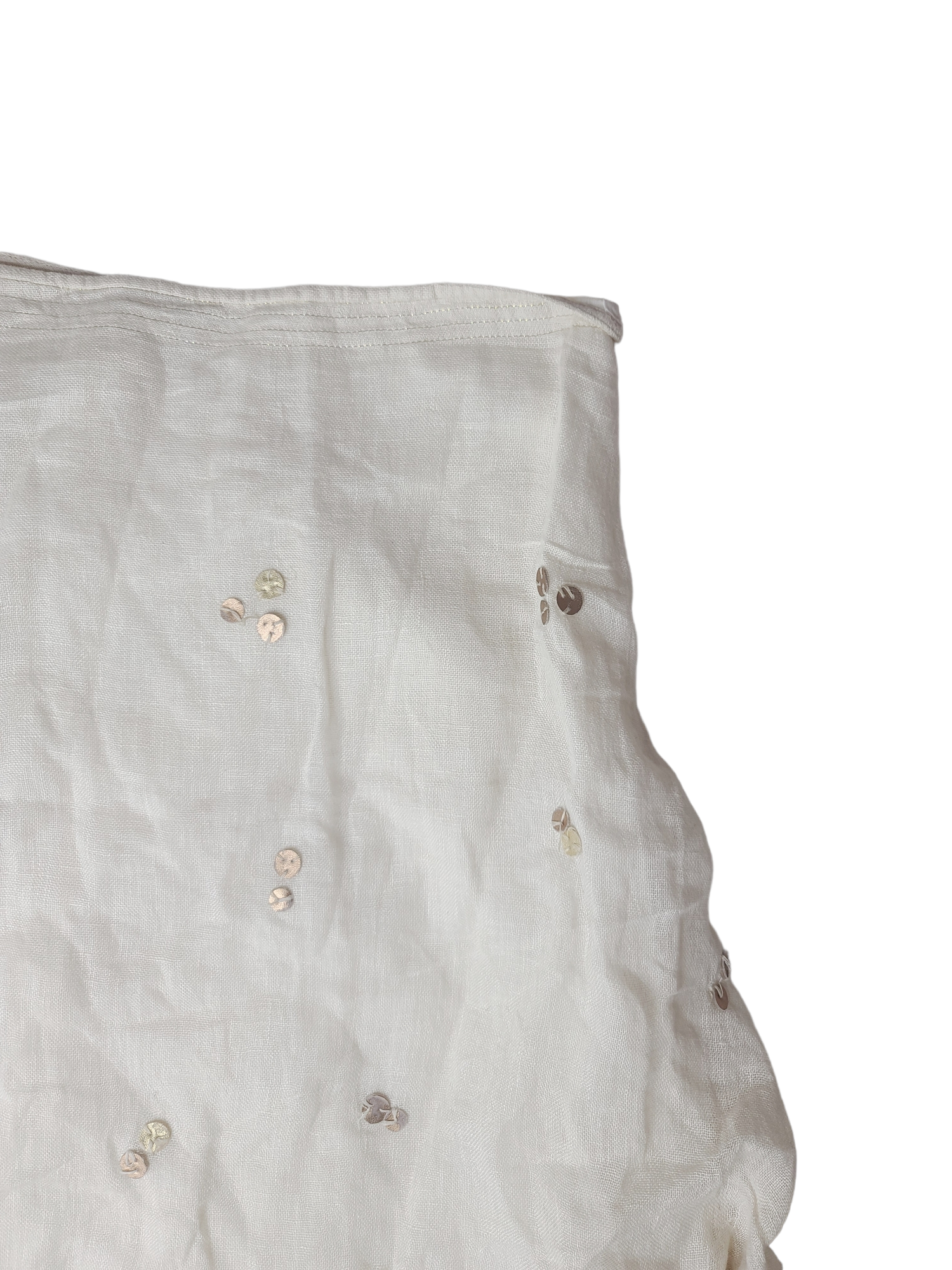 Beautiful vintage beige fairygrunge linen long skirt. Ruffled cut with sequin embroidery, bohemian. Neutral dystopian style.
