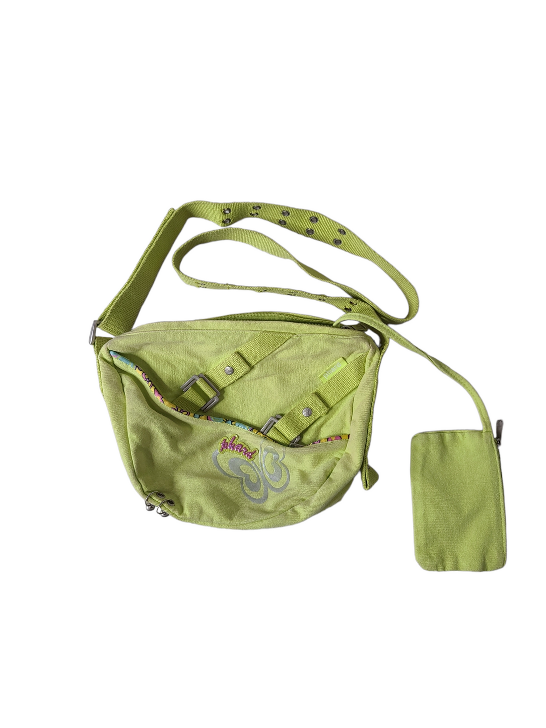 3. Beautiful vintage green shoulder bag y2k 2000s, kidcore. Eyelet strap.