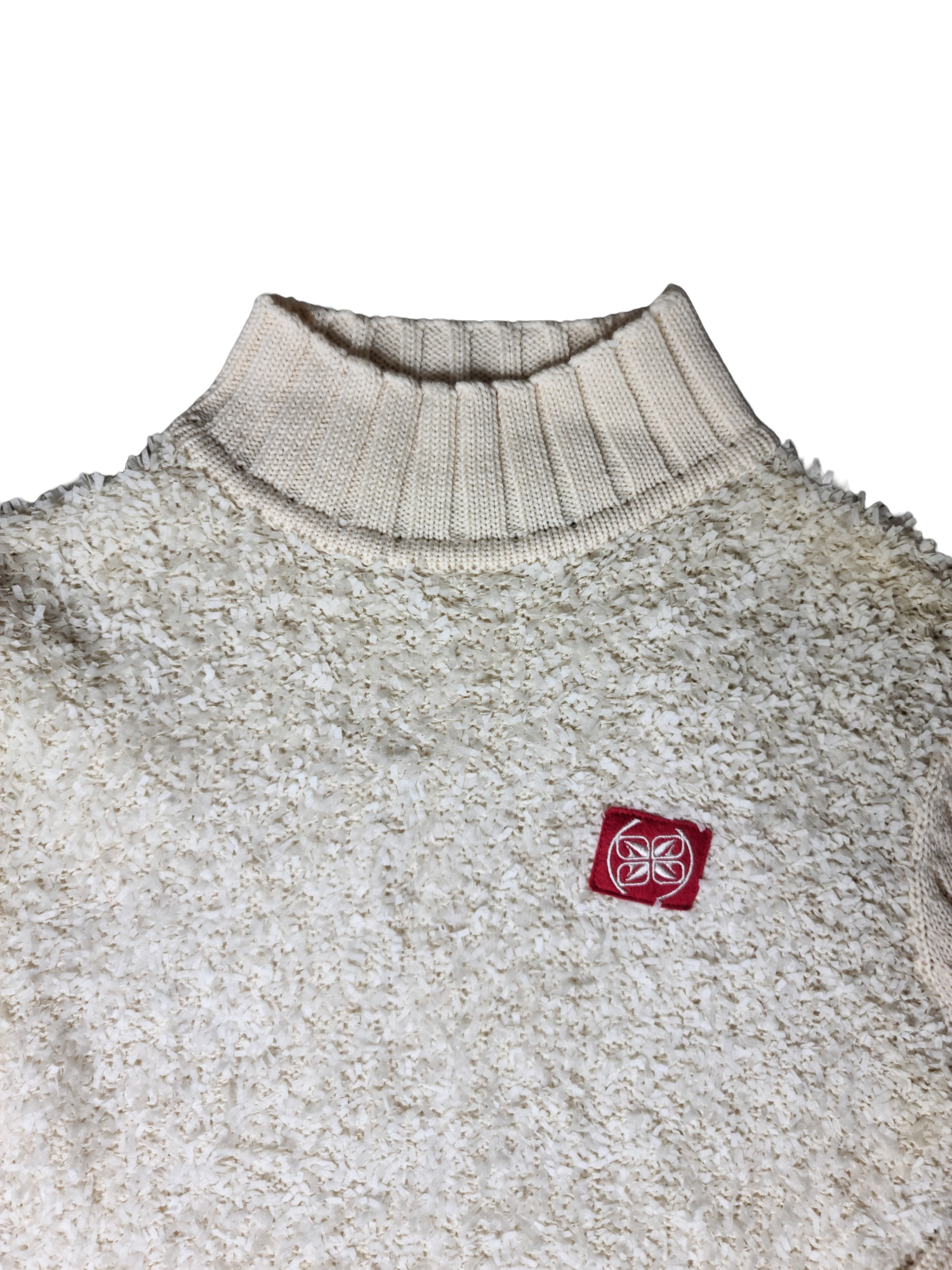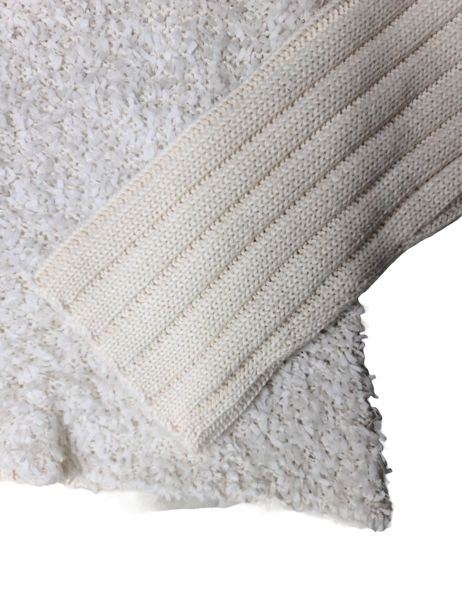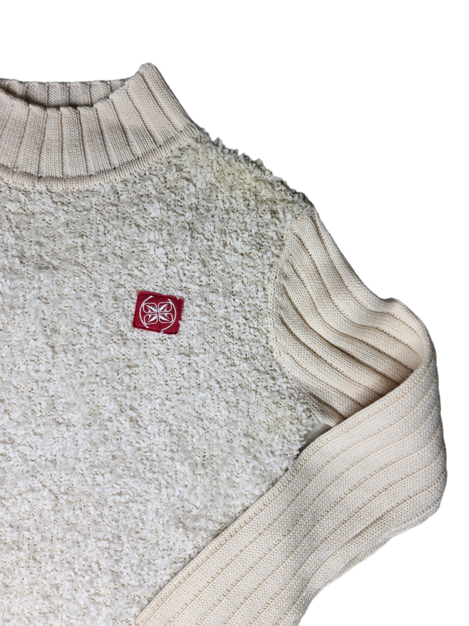 Amazing vintage two-material sweater with ribbed sleeves, cream color. Archive neutral style.